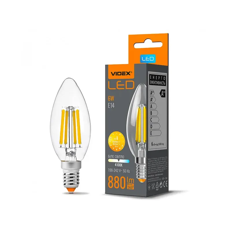 Теги: LED лампа E14, філаментна лампа VIDEX, лампа свічка 6W, тепле світло 2200K, енергозберігаюча лампа, декоративна лампа бронза, лампа для люстри