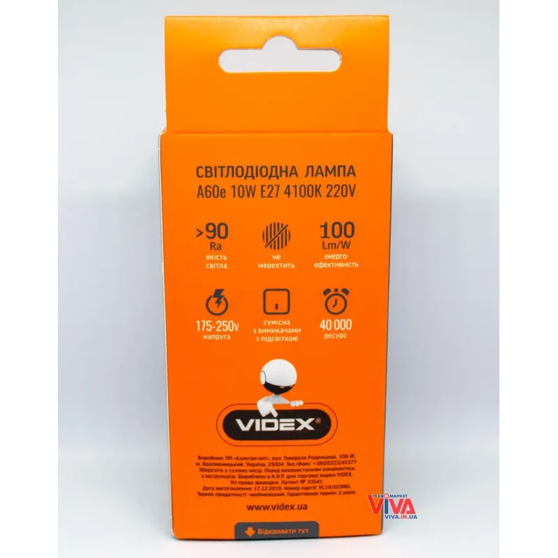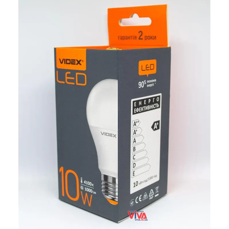 Теги: LED лампа VIDEX, світлодіодна лампа E27, лампа 4100K, енергозберігаюча лампа, лампа 10W, освітлення для дому, VIDEX A60e