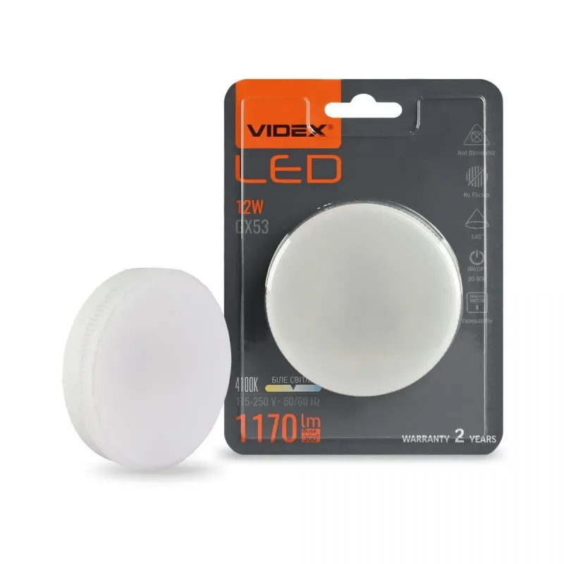 LED лампа VIDEX GX53 12W 4100K 220V — це сучасне рішення для точкового освітлення, яке поєднує енергоефективність, природний білий спектр світла та тривалий термін служби до 30 000 годин.