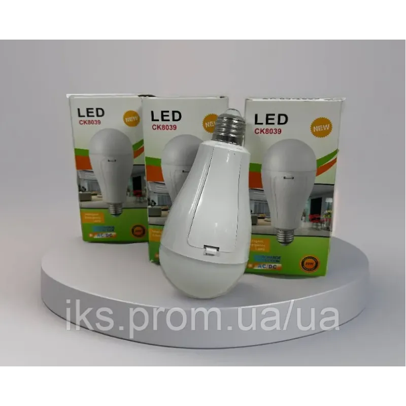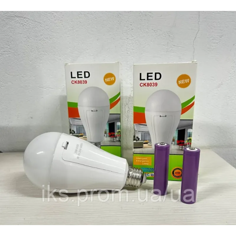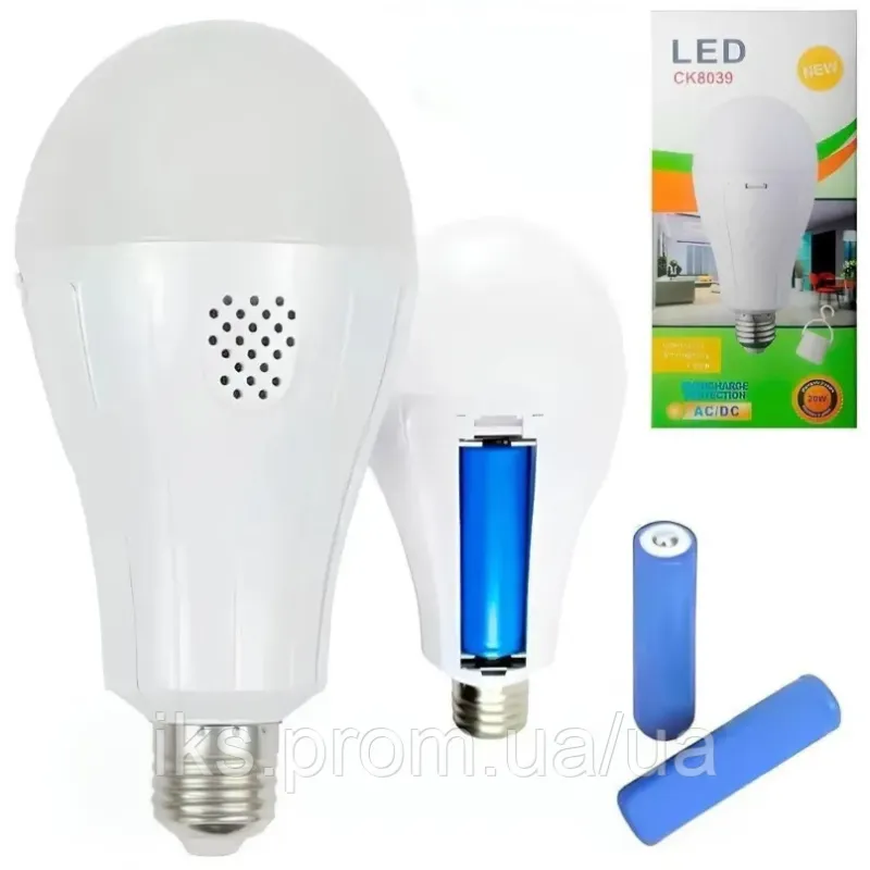 Теги: LED лампа з акумулятором, аварійна лампочка E27, автономна лампа 20W, лампа для відключень світла, акумуляторна лампочка 18650, енергонезалежне освітлення