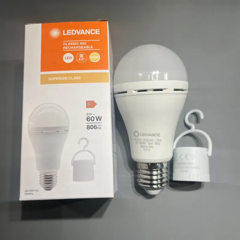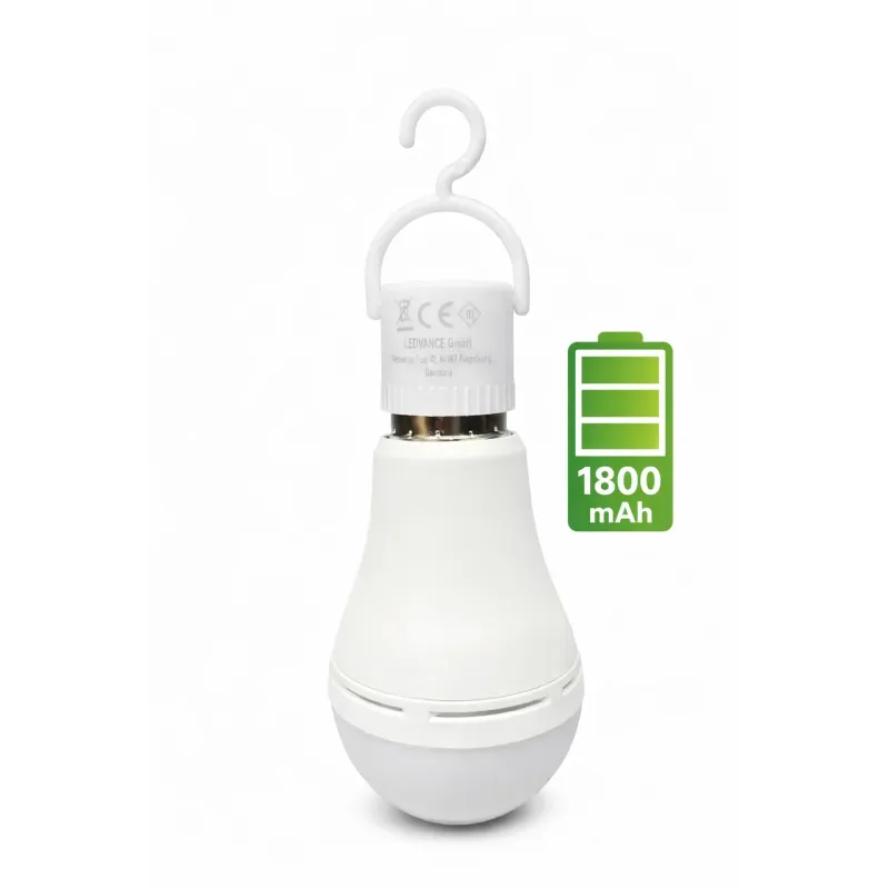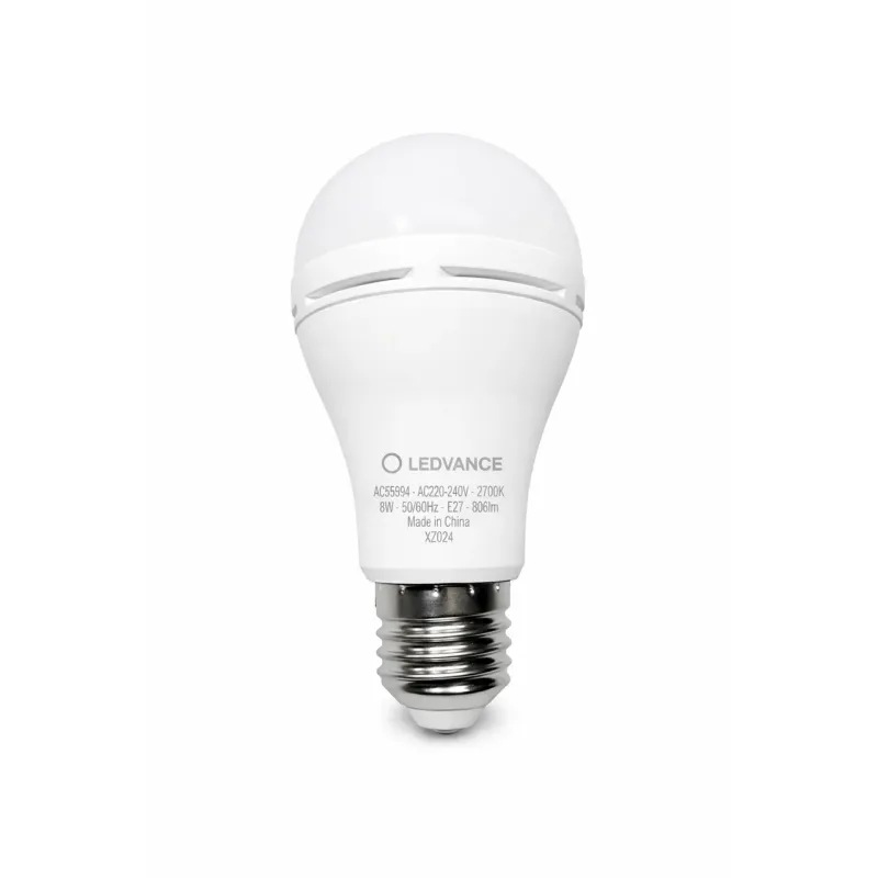 Теги: лампа з акумулятором, світлодіодна лампа E27, LEDVANCE акумуляторна, лампа для аварійного освітлення, LED лампа 8Вт, енергозберігаюча лампа, лампа при відключенні світла