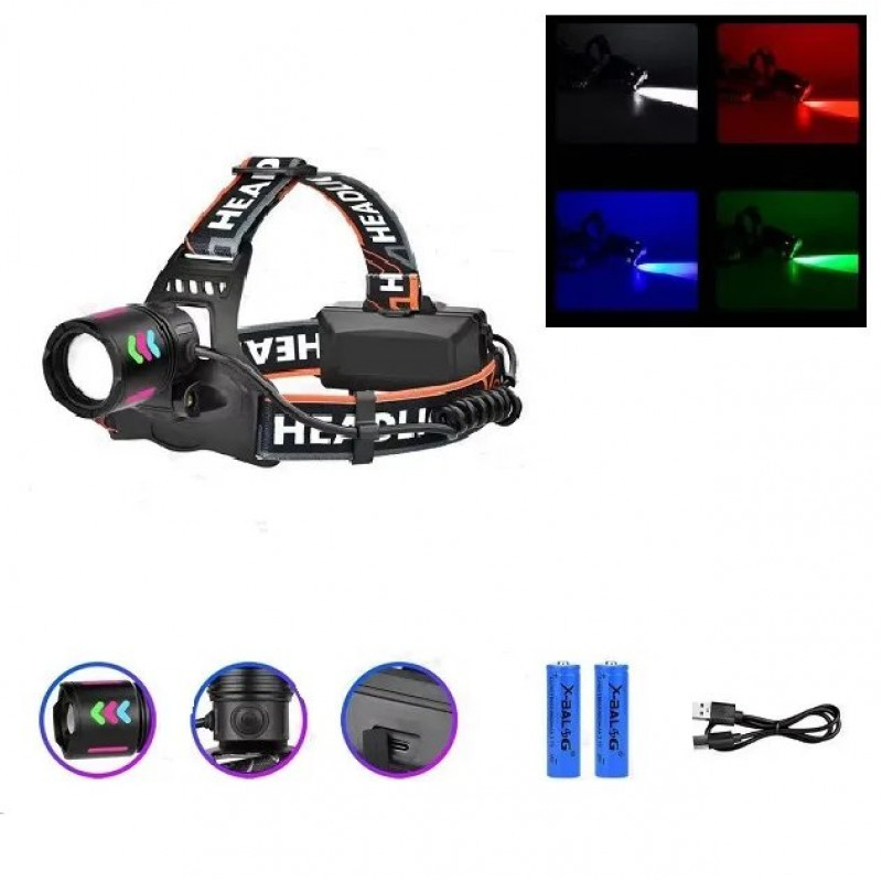 Ліхтарик налобний з 4 кольорами світіння Bailong BL-8096-4