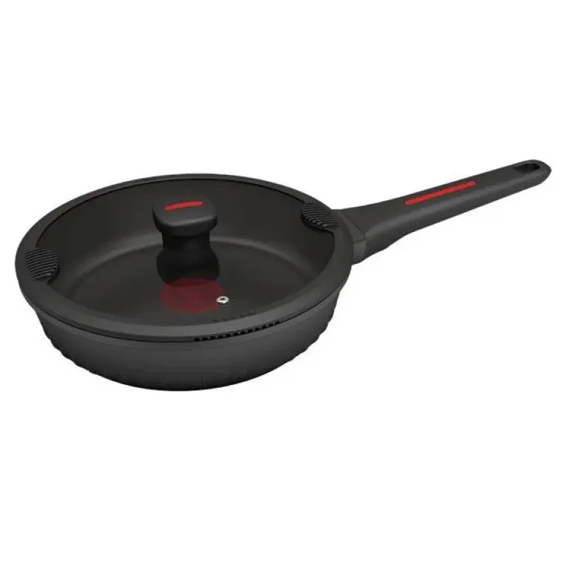 - Индикатор нагрева Да, QUICK FRY. По мере нагревания сковороды изменяется цвет индикатора. Как только сковорода достигает максимальной температуры, индикатор Quick Fry становится полностью красным, показывая, что достигнута равномерная и оптимальная температура для приготовления блюд