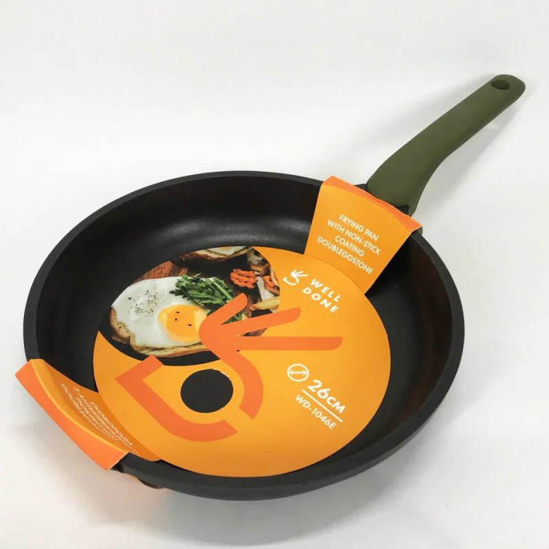 Сковороды Well Done изготовлены из литого алюминия с многослойным антипригарным покрытием. Это антипригарное покрытие на водной основе, не содержит тяжелых металлов, не взаимодействует с приготовляемыми продуктами и абсолютно безопасно для организма человека и окружающей среды.
