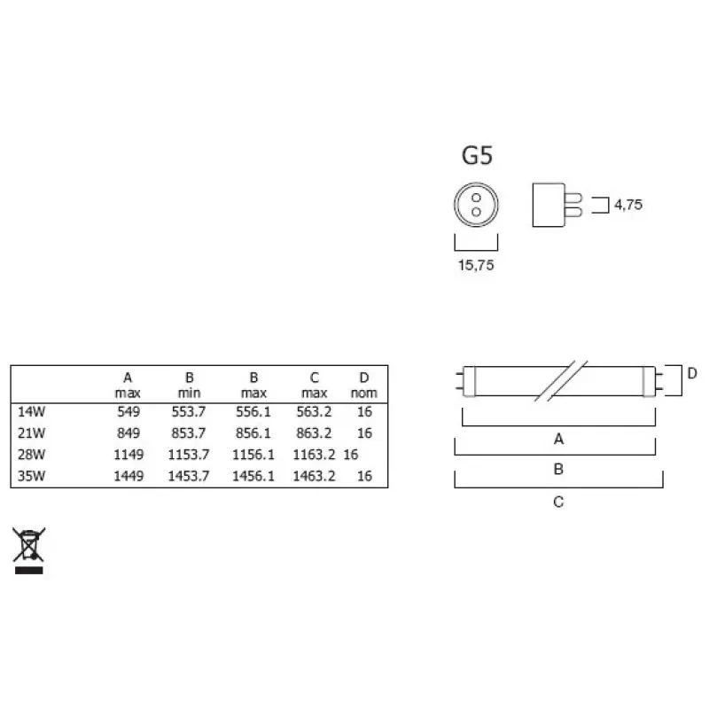 Лампа підходить для світильників з цоколем G5. Встановлення займає лише хвилину: вставте лампу в патрон до клацання, поверніть на 90 градусів. Ідеально для підвісних стель, настінних світильників та спеціалізованих систем освітлення в офісах, магазинах, складах та громадських приміщеннях.
