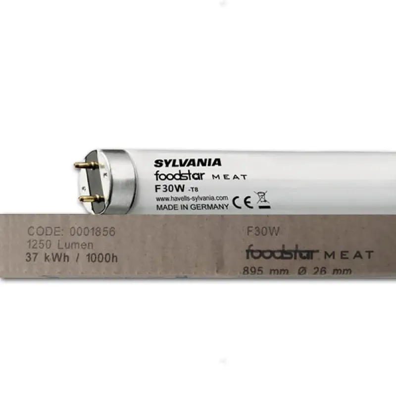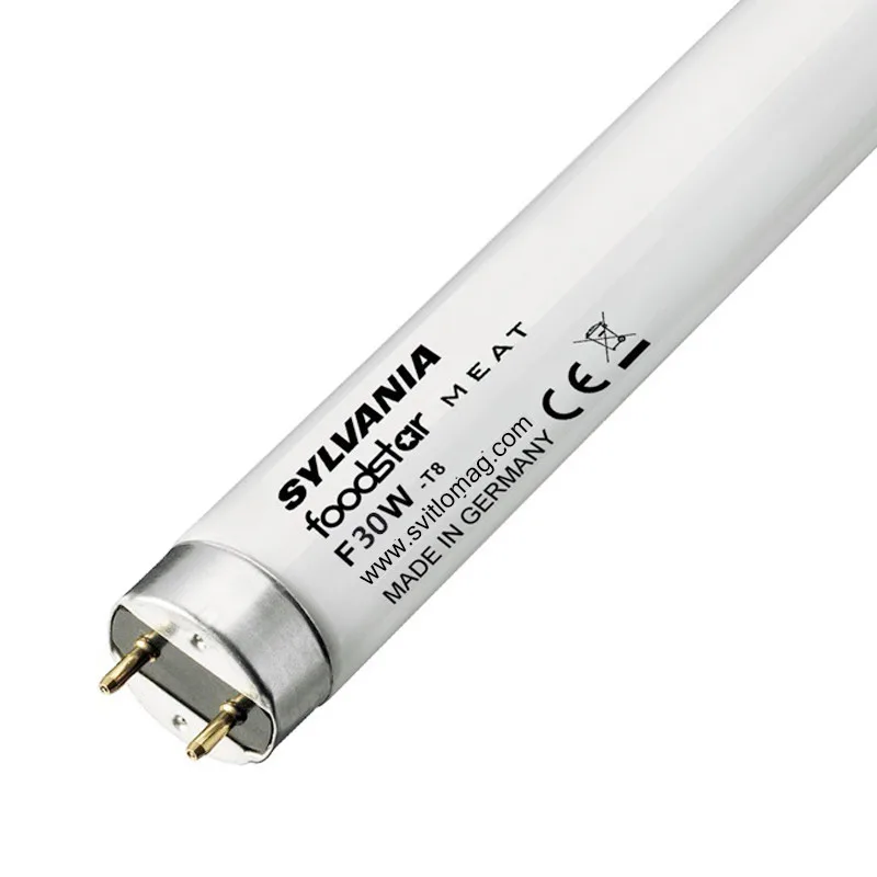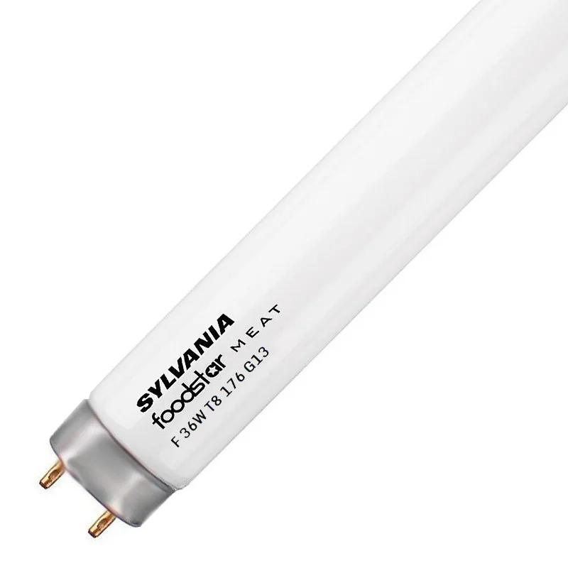 Теги: люмінесцентна лампа для м'яса, Sylvania FOOD STAR, лампа для вітрини, освітлення м'ясного відділу, лампа T8 36W, спеціалізоване освітлення, Sylvania Україна