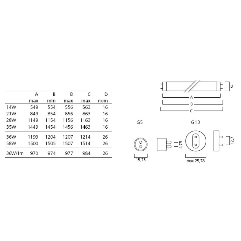 - **Цоколь T8** — універсальна сумісність з більшістю світильників