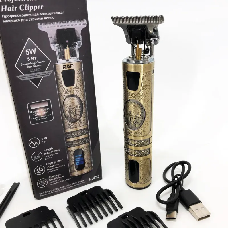 Триммер для стрижки волос R.433 – це функціональний пристрій, що поєднує компактність і ефективність для догляду за волоссям у домашніх умовах і в дорозі. Завдяки продуманому дизайну та сучасним технічним рішенням він забезпечує точну і комфортну стрижку в різних зонах обличчя та голови.