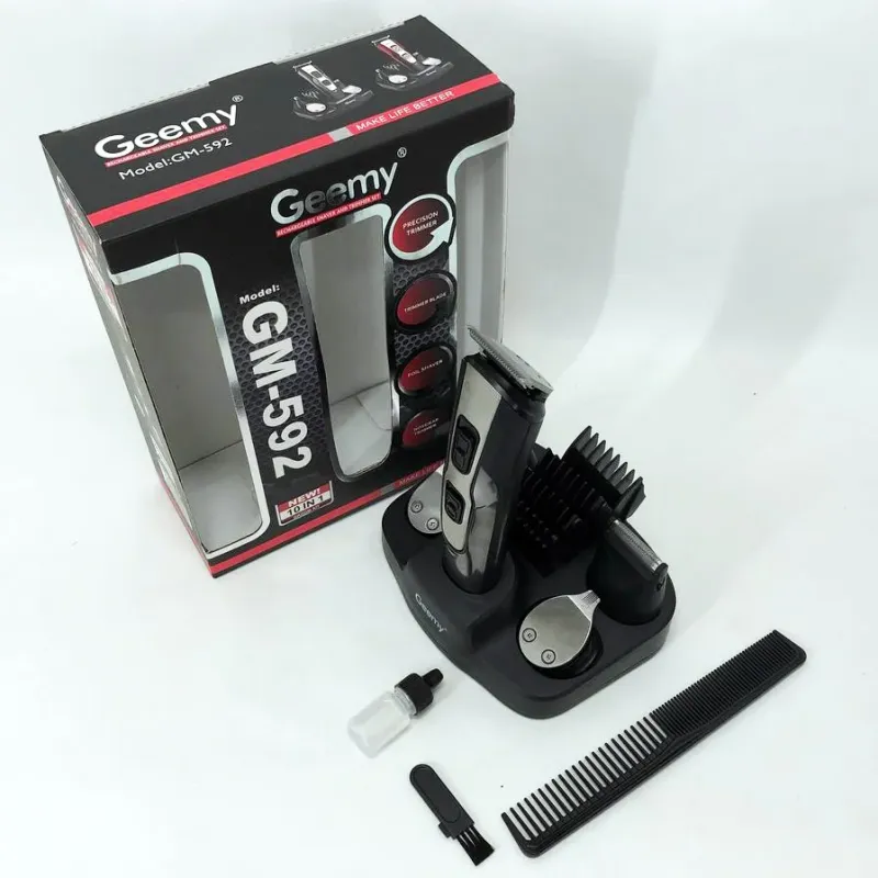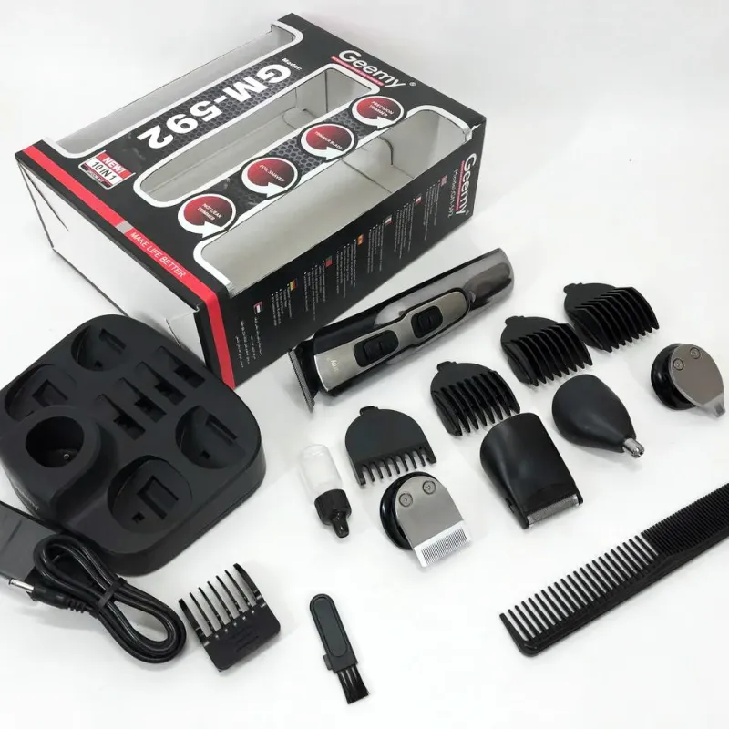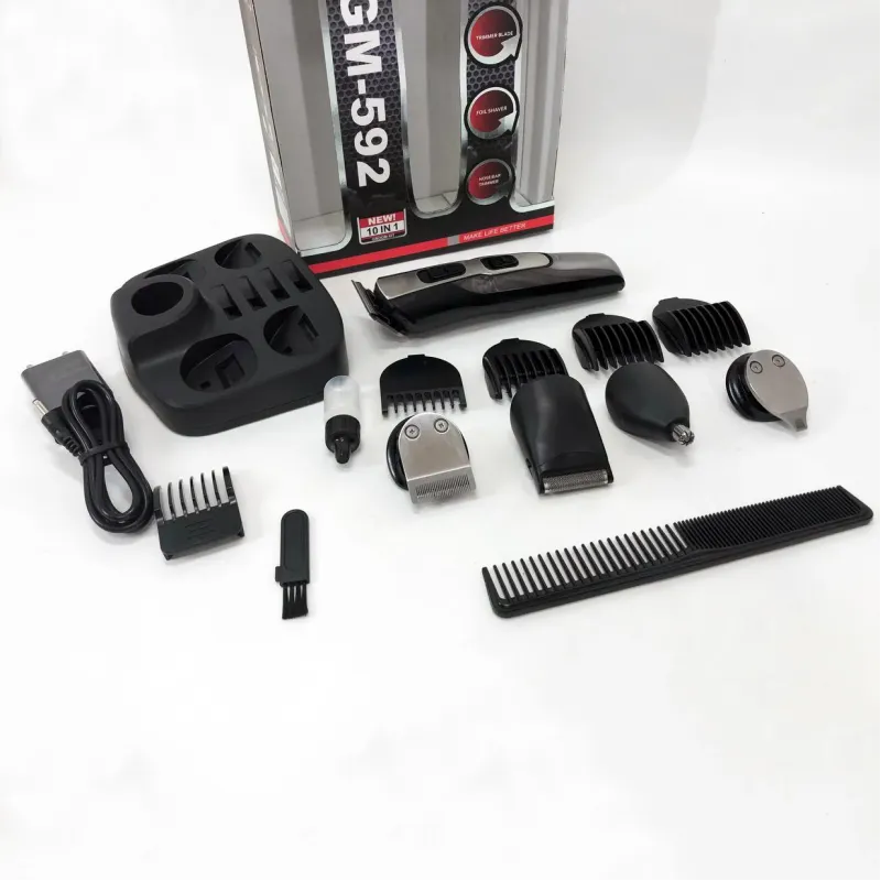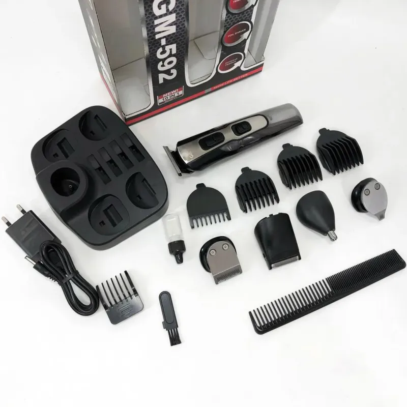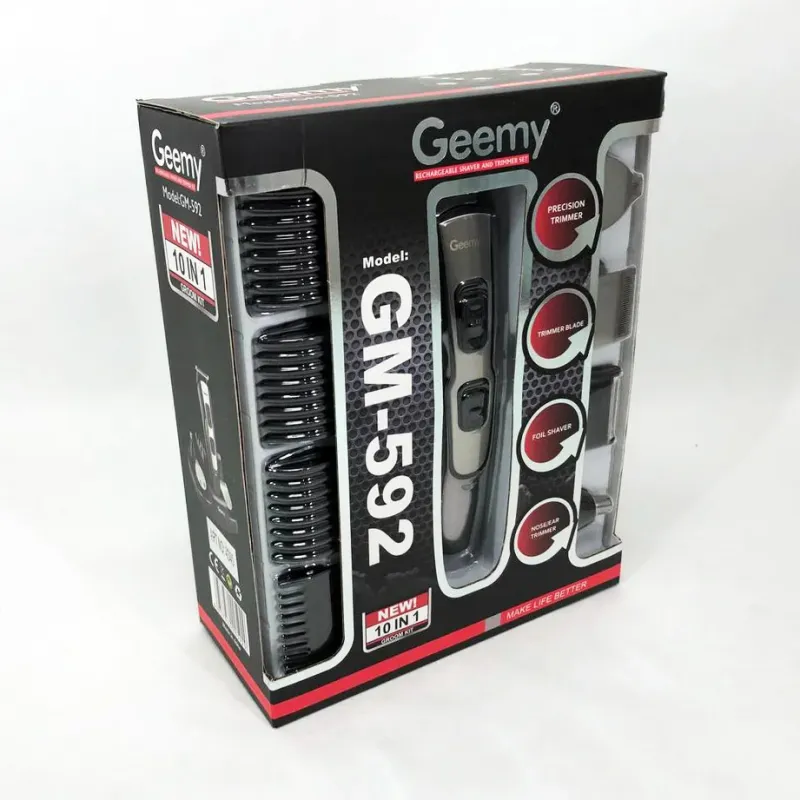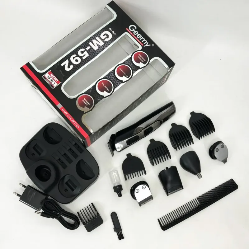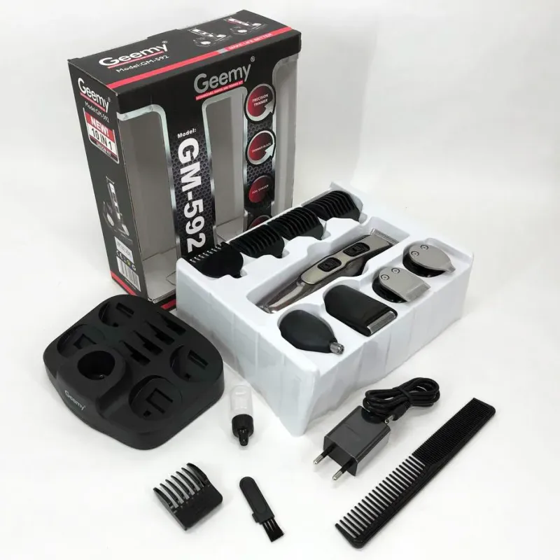 Машинка для стрижки 10в1 GEMEI GM-592 - це універсальний інструмент для догляду за волоссям. Вона складається з 10 різних насадок, що дозволяють стригти волосся, бороду, вуса та інші частини тіла.