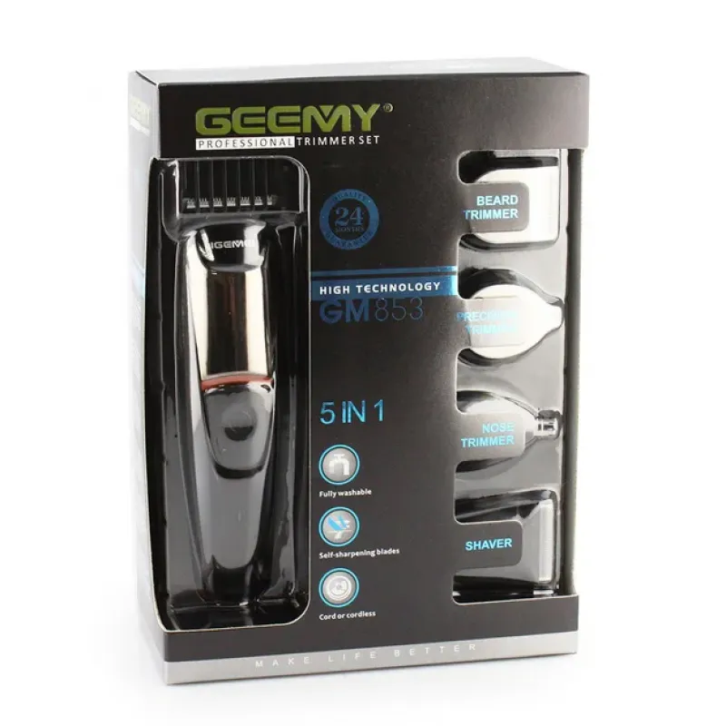 Машинка для стрижки 5в1 Geemy GM-853– это практичная, надежная и качественная машинка для стрижки волос, которая поможет создать стрижки разной длины.