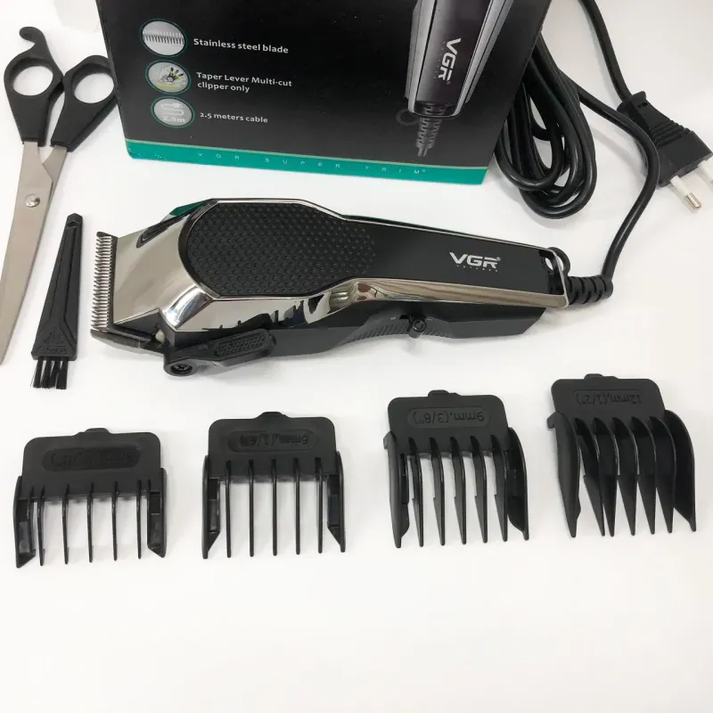 Машинка для стрижки VGR V-130 проводная профессиональная с насадками для окантовки триммер для волос