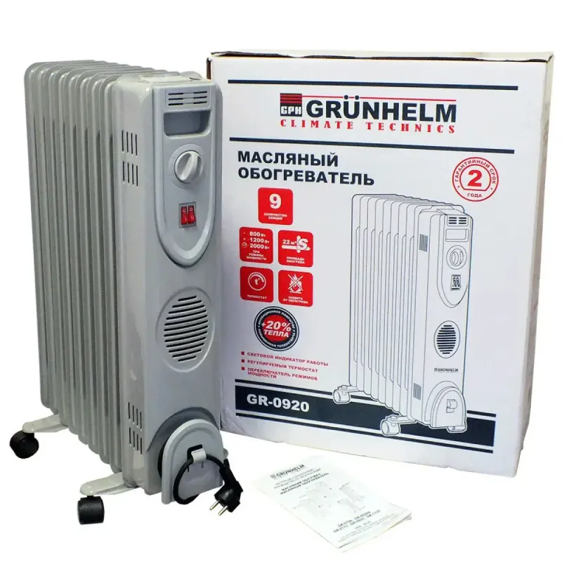 Масляный обогреватель Grunhelm GR-0920 — якісний товар за доступною ціною в інтернет-магазині shtyrman.com. Перевірена якість від надійних виробників гарантує тривалий термін служби. Зручне використання та простий догляд роблять цей товар ідеальним для щоденного застосування. Швидка доставка по всій Україні від Нової Пошти та Укрпошти. Гарантія якості та можливість повернення протягом 14 днів.