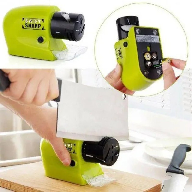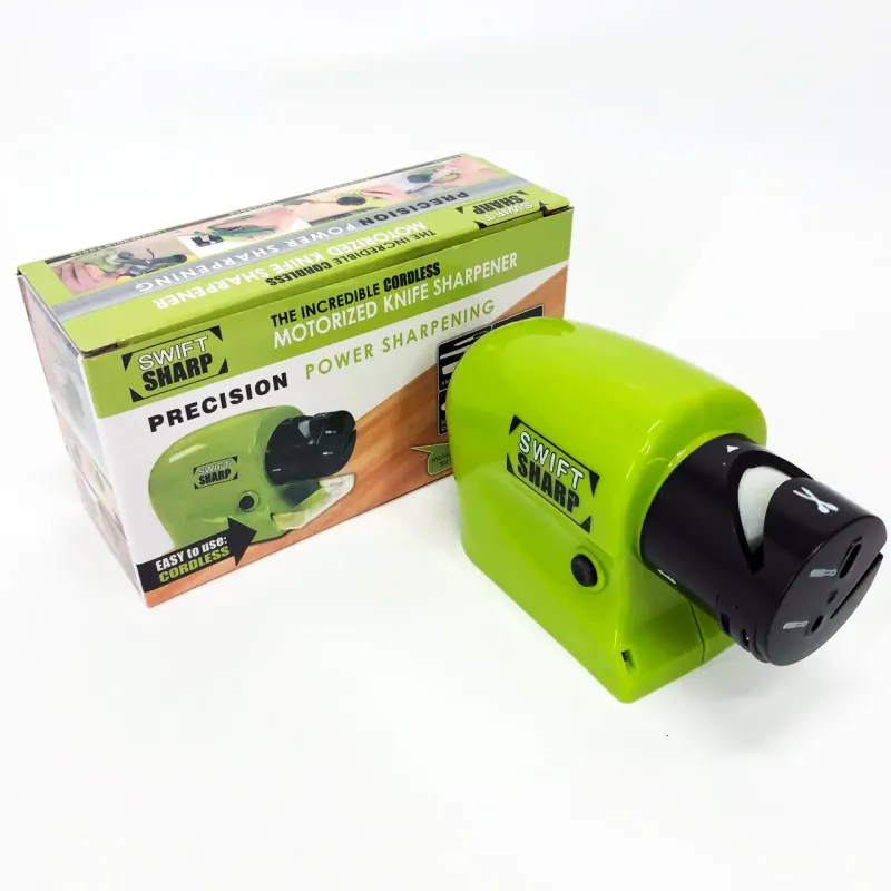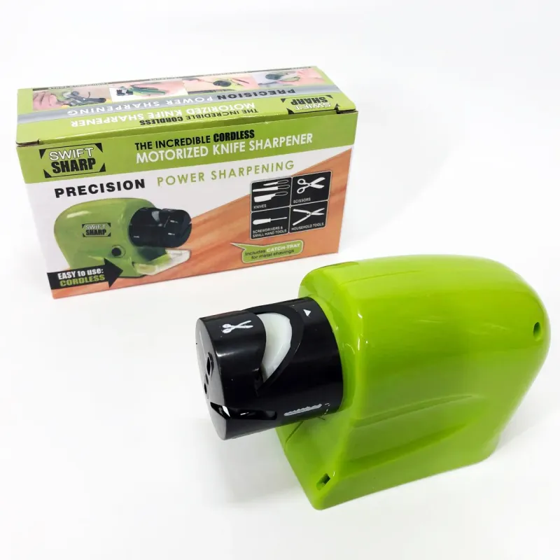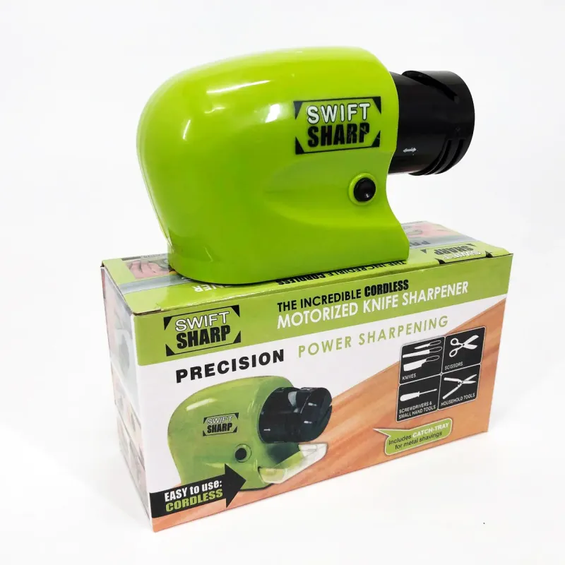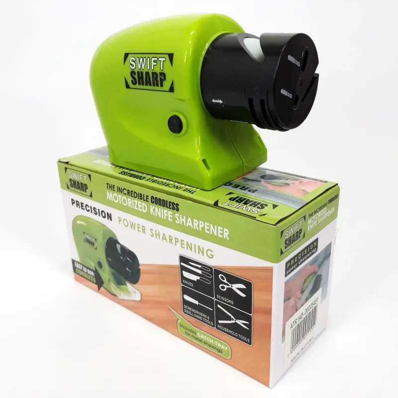 Точилка для ножей и ножниц на батарейках Swifty Sharp предназначена как для домашнего, так и профессионального использования. Эта точилка поможет вам сэкономить время, деньги и повысить уровень безопасности при обращении с ножами, он предназначен для обеспечения идеального и прочного острого угла 20.