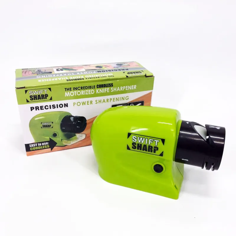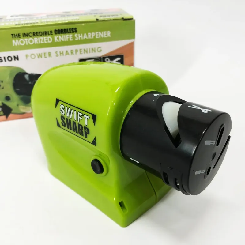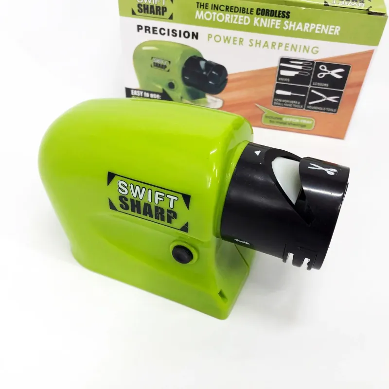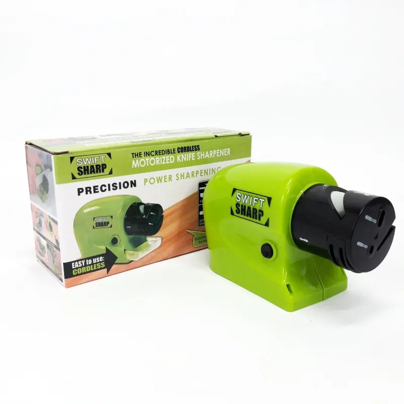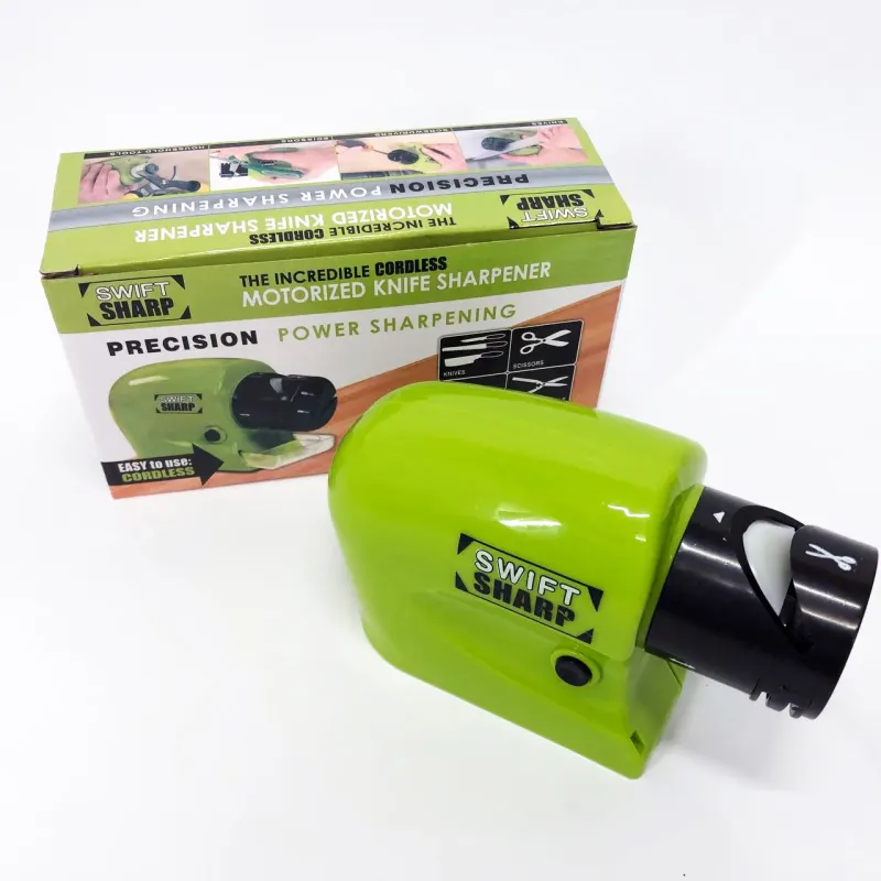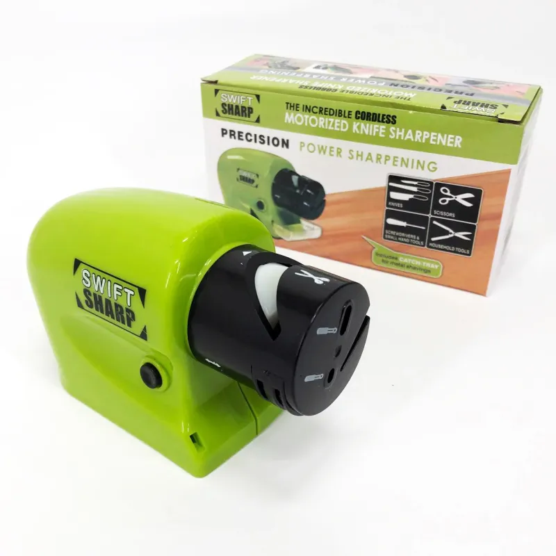 Точилка для ножей и ножниц на батарейках Swifty Sharp предназначена как для домашнего, так и профессионального использования. Эта точилка поможет вам сэкономить время, деньги и повысить уровень безопасности при обращении с ножами, он предназначен для обеспечения идеального и прочного острого угла 20.