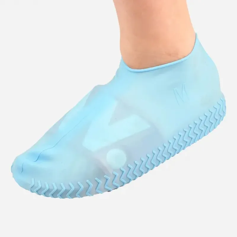 Многоразовые бахилы-чехлы L (41-45 размер) для обуви силиконовые от воды и грязи. Цвет: голубой