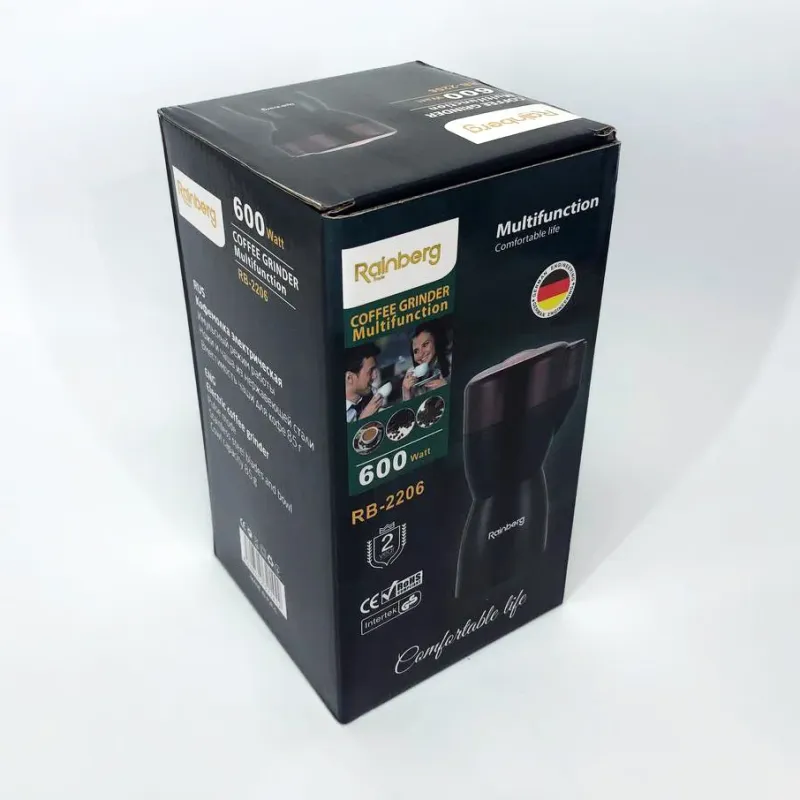 Мощная електическая кофемолка измельчитель Rainberg RB 2206 600 Вт - не займет много места на кухне и прекрасно подойдет к любому интерьеру.