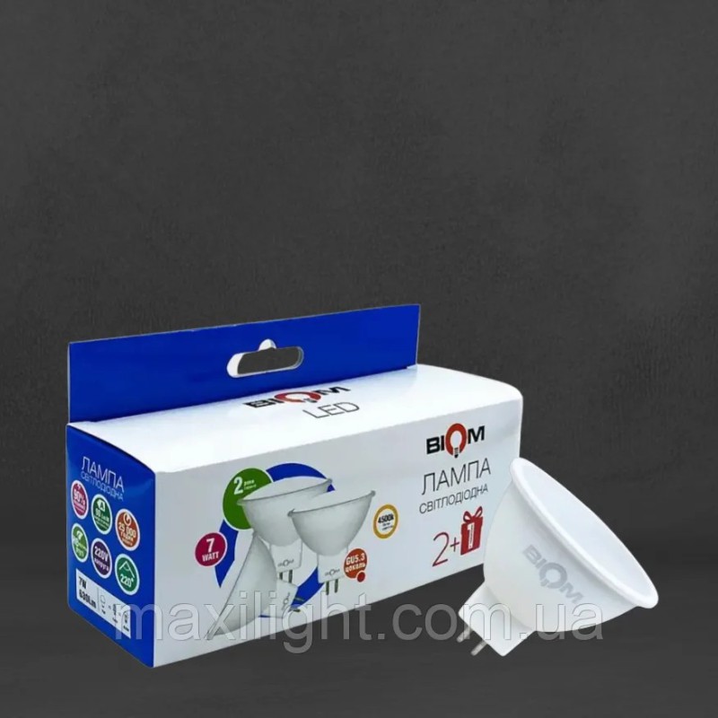 Мультіпак 3шт! Лампи BIOM MR16 7W — економте на освітленні до 85%