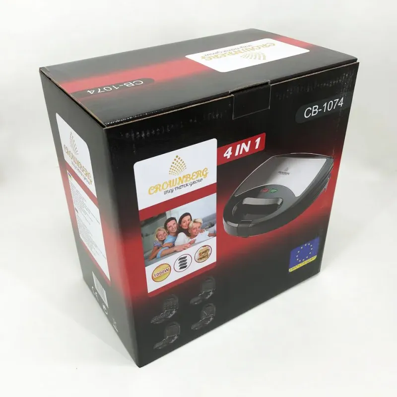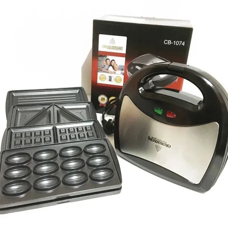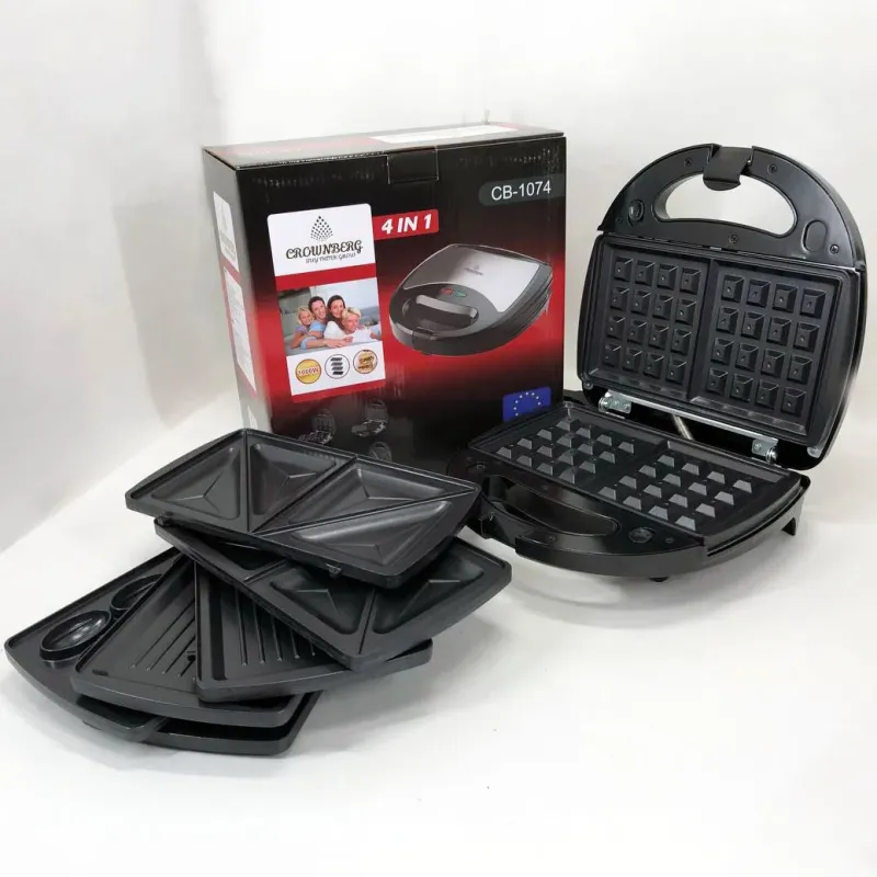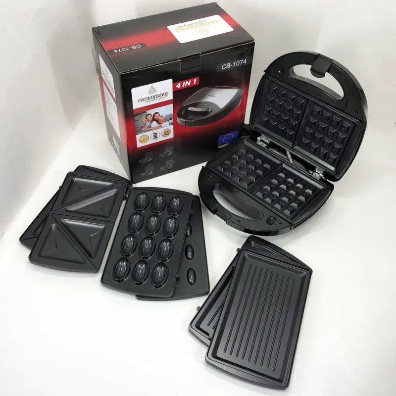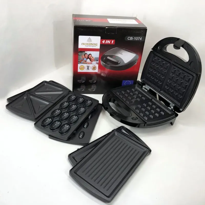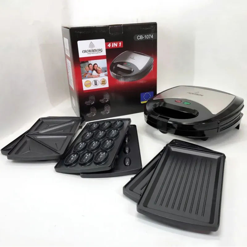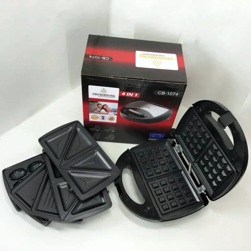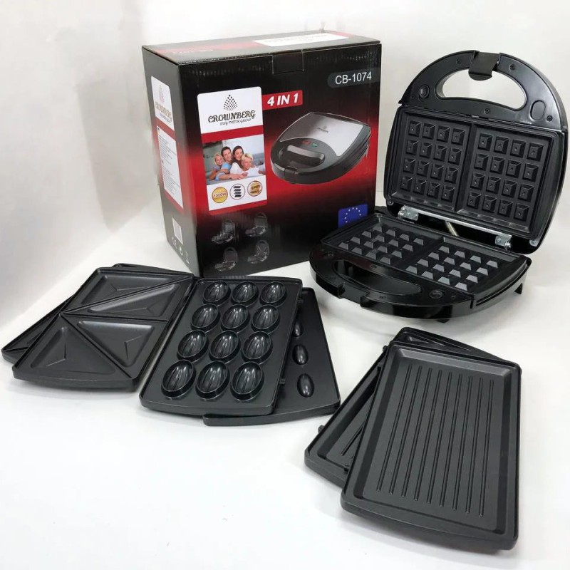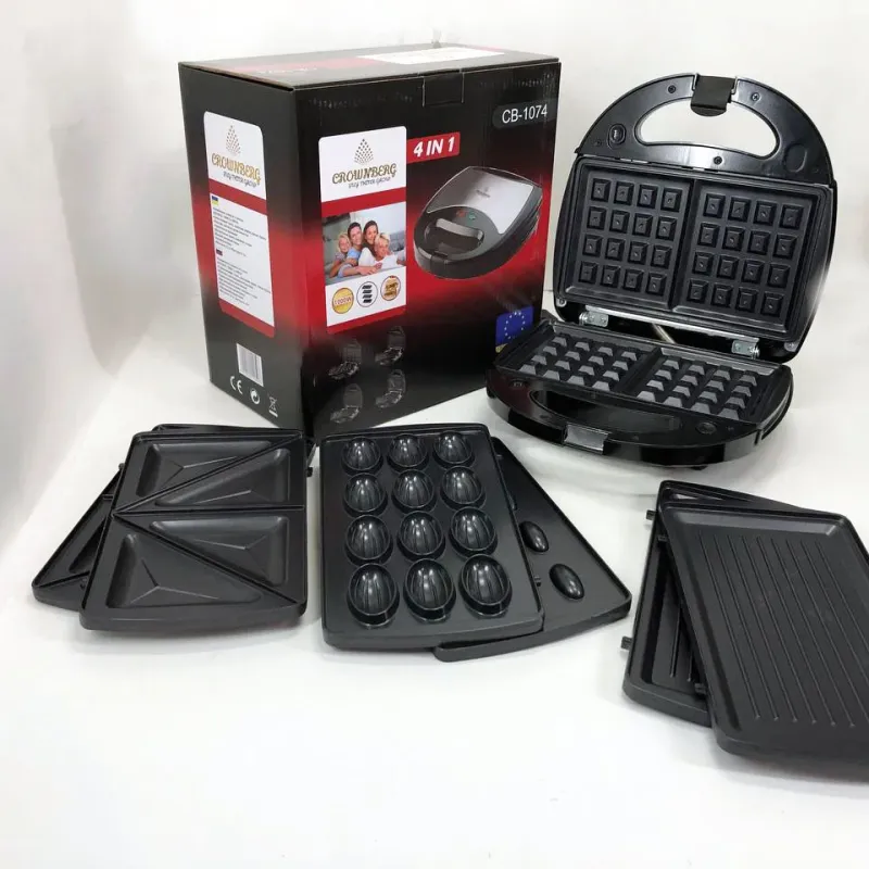 Мультимейкер 4 В 1 Crownberg CB-1074 750Вт Гриль Сендвичница Вафельница Орешница