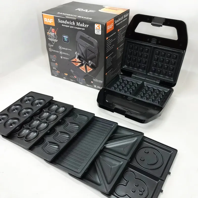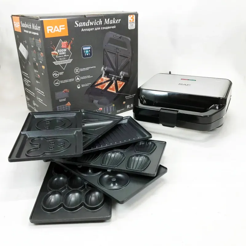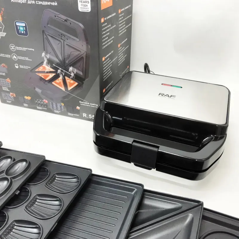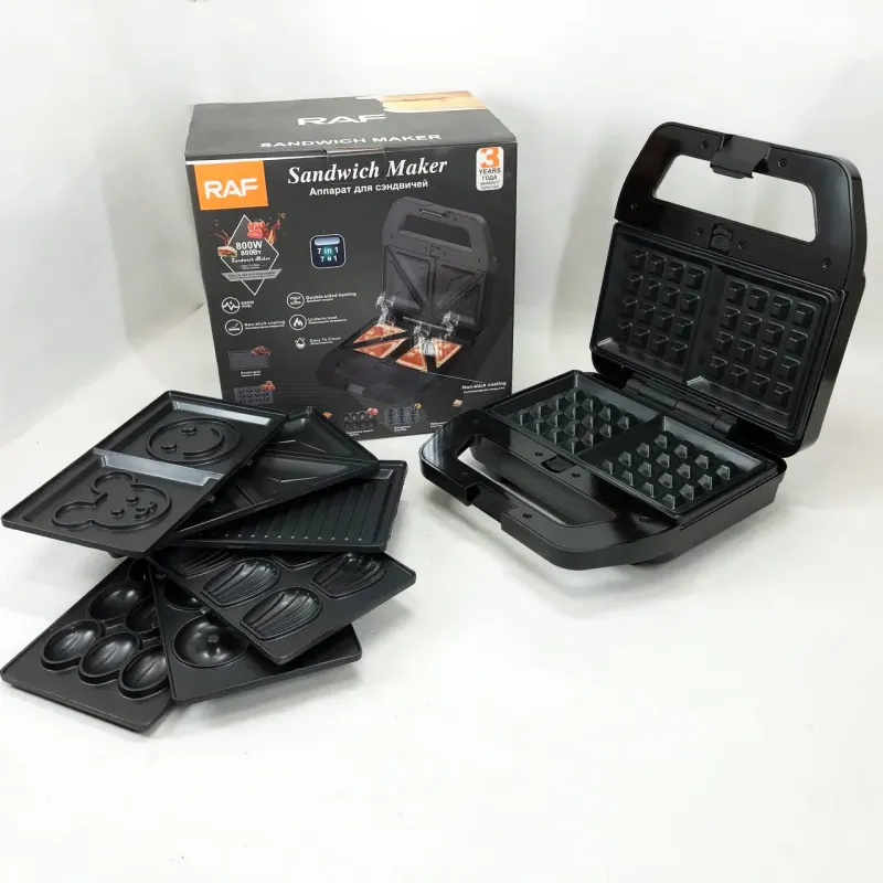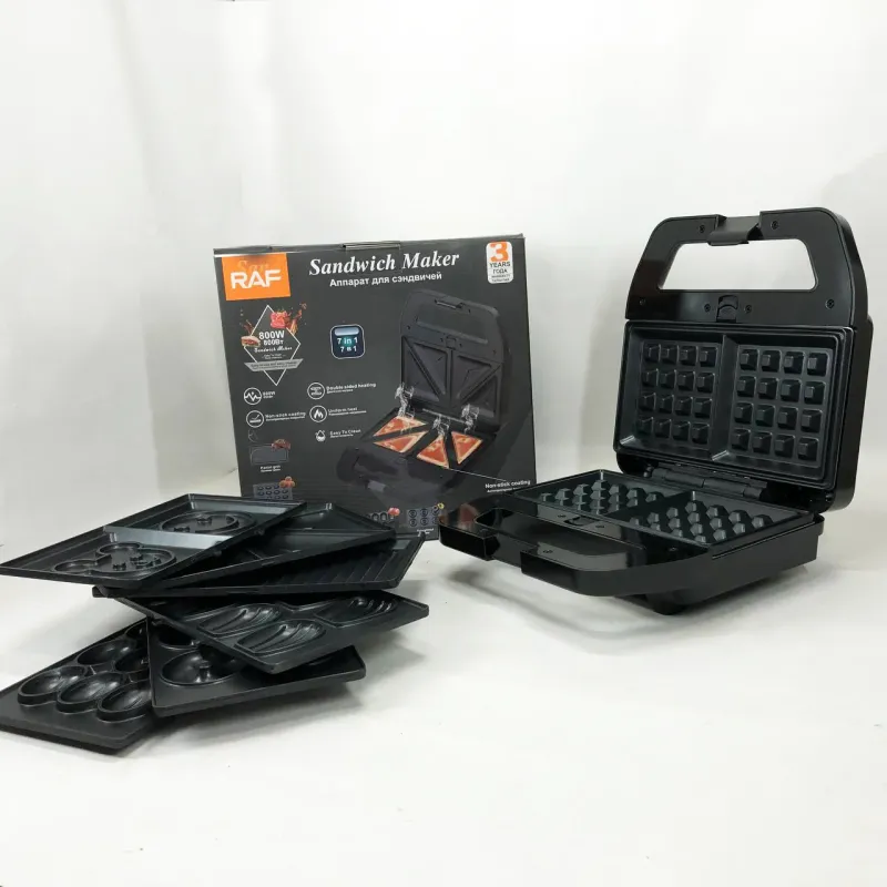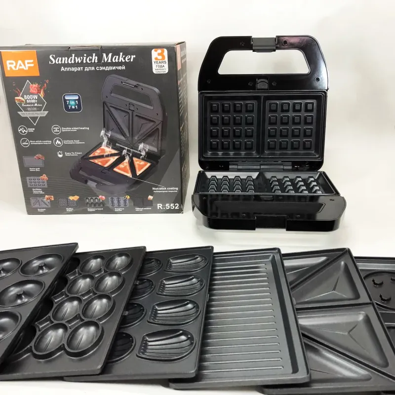 Мультимейкер RAF R.552 – 7 в 1: вафельница, гриль, сэндвичница, пончики, орешки, кексы, печенье, 800 Вт