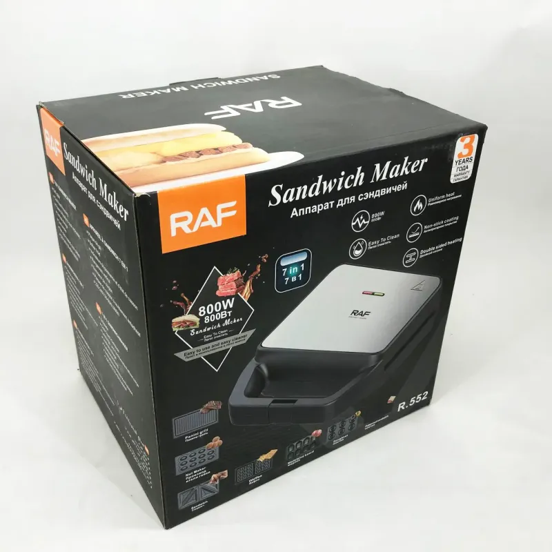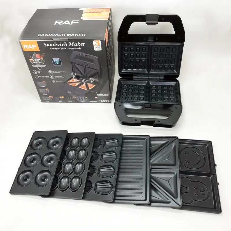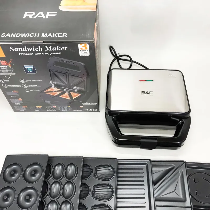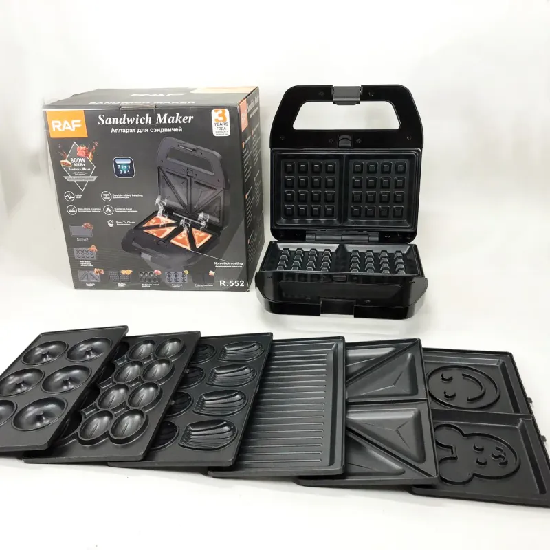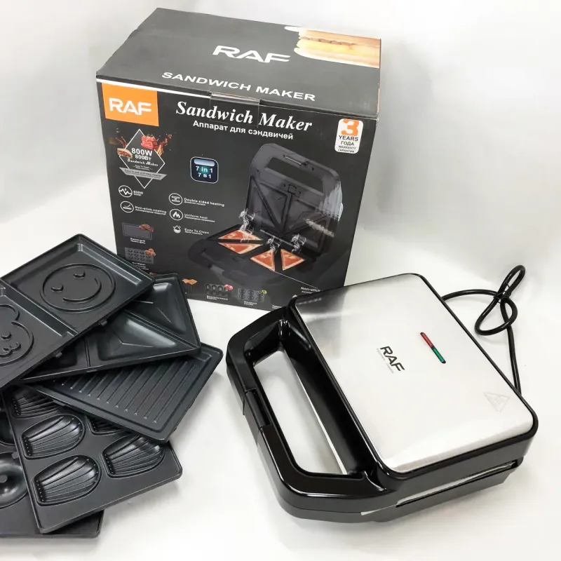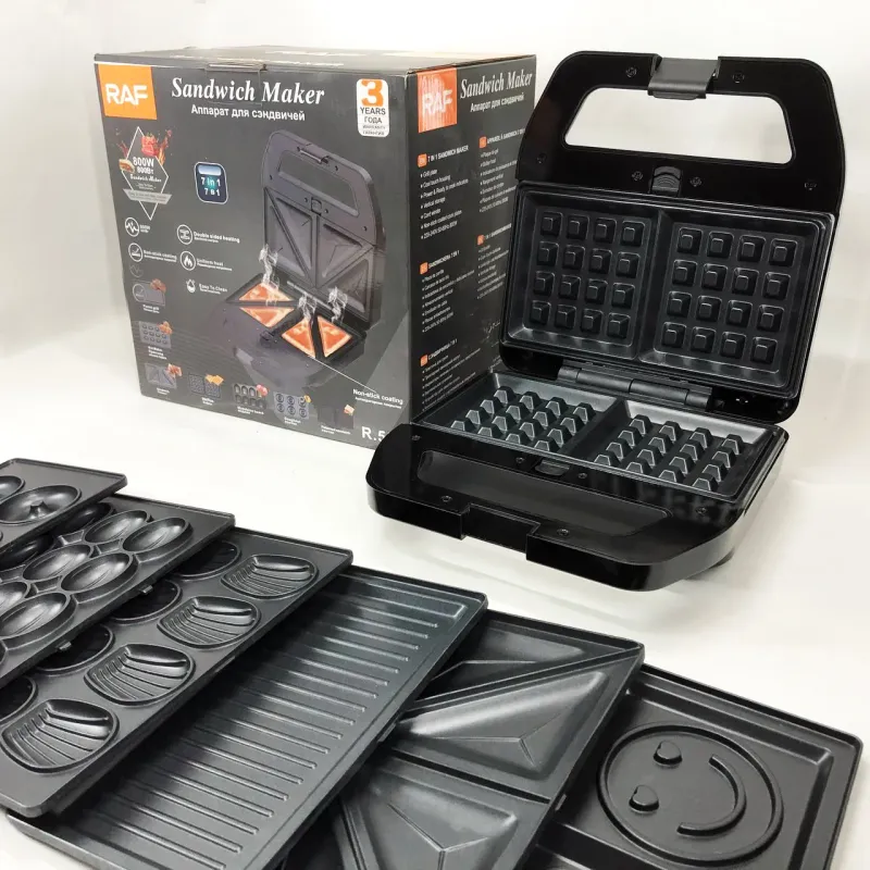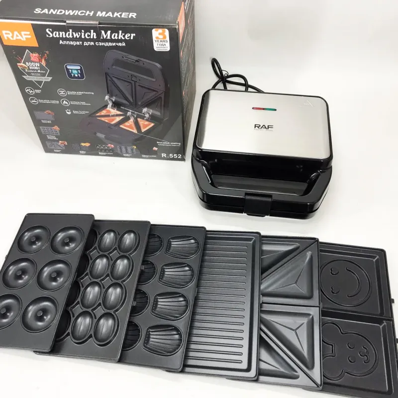 Мультимейкер RAF R.552 – 7 в 1: вафельница, гриль, сэндвичница, пончики, орешки, кексы, печенье, 800 Вт