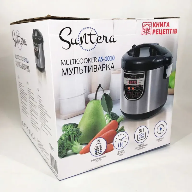 Мультиварка Suntera AS-1010S 900 Вт, многофункциональная мультиварка, пароварка для кухни бытовая
