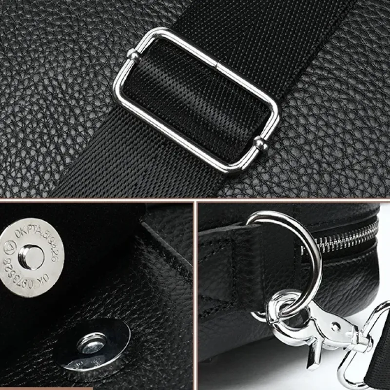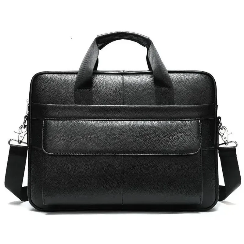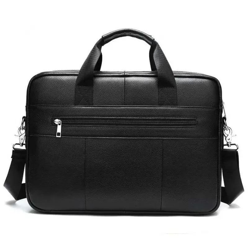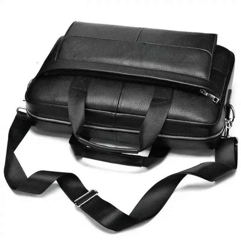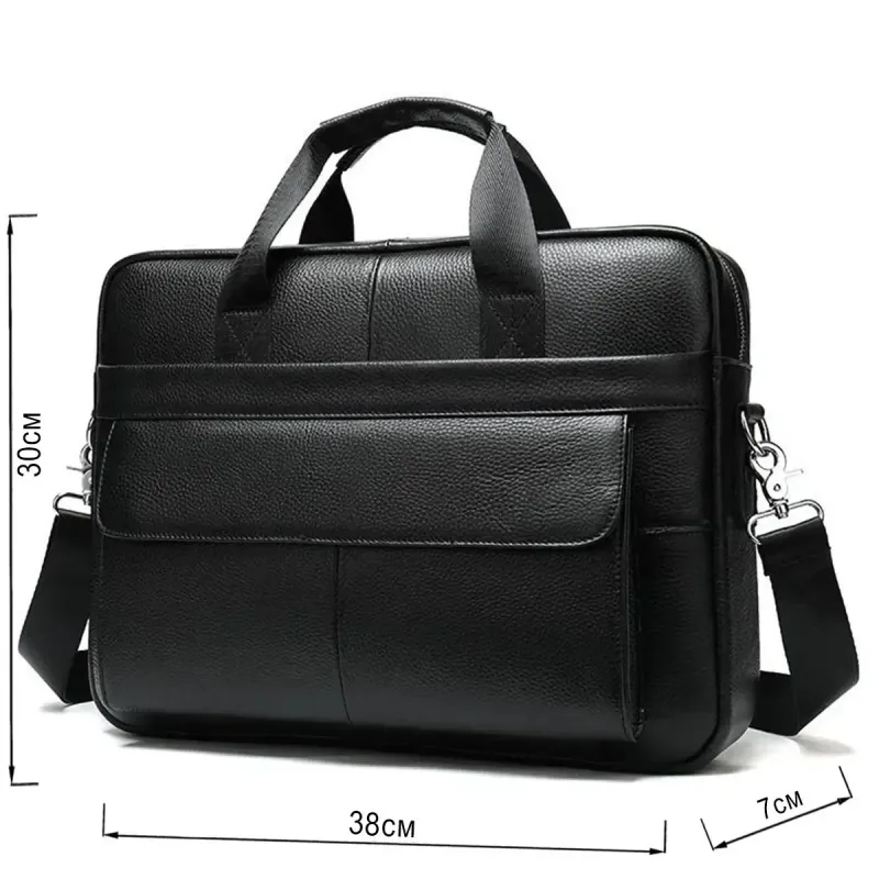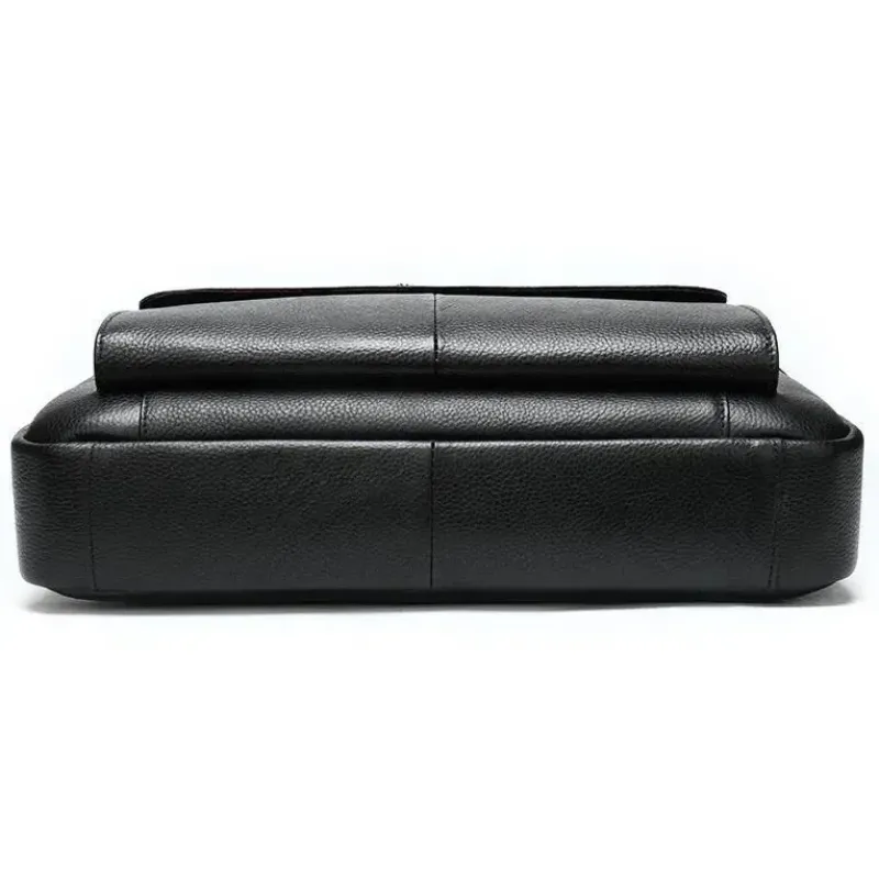 Изящная и вместительная мужская сумка, выполненная из премиальной натуральной кожи (флотар) черного цвета. Изделие сочетает стильный дизайн и высокую функциональность, имеет надежную металлическую фурнитуру и удобную организацию внутреннего пространства. Идеально подходит для работы, деловых встреч или повседневного использования.