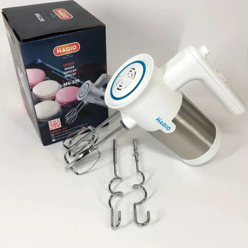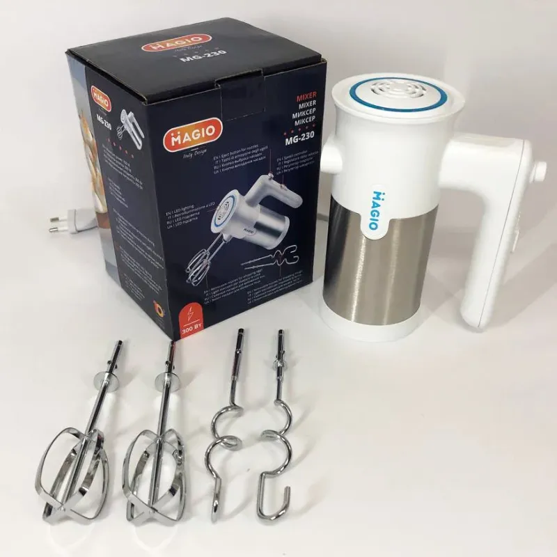 Magio MG-230 – це потужний і функціональний міксер, який відповідає вимогам сучасної кухні, забезпечуючи швидке та ефективне приготування різноманітних кулінарних страв. Завдяки оптимальній потужності і продуманому дизайну, він стане незамінним помічником як для домашнього, так і для професійного використання. Цей пристрій дозволить вам економити час і зусилля, роблячи процес приготування максимально комфортним.