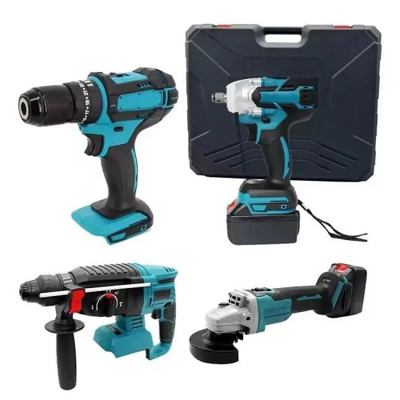 Набір акумуляторного інструменту 4 в 1 (Болгарка, Шуруповерт, Гайковерт, Перфоратор) DOMOTEC