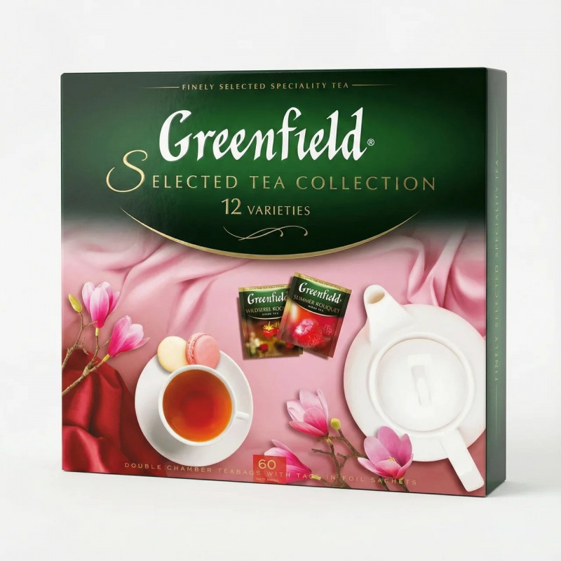 Набір чаю Greenfield Selected Tea Collection 12 видів (60 пакетів). Подарунковий набір чаю в пакетиках