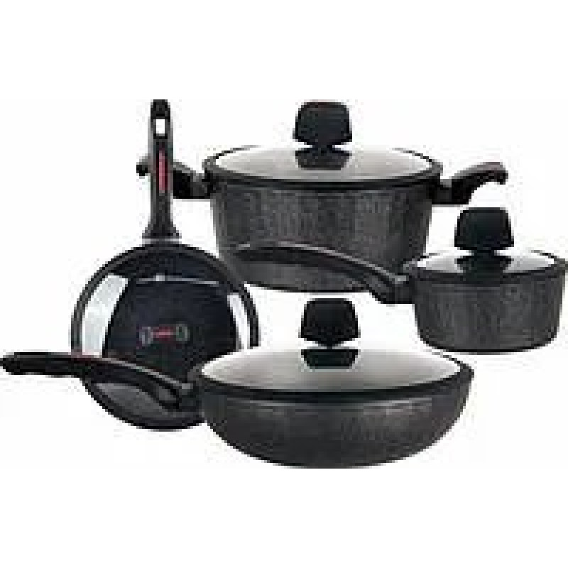 Завдяки якісному антипригарному покриттю та товстому алюмінієвому дну казани забезпечують рівномірний прогрів без пригорання. Ергономічні ручки залишаються холодними, а міцна конструкція служить роками.