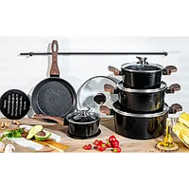 Ківш із кришкою – 1.2 л;Сковорода з кришкою 1,9 л, діаметр 24 см;Каструля з кришкою 2.3 л;Каструля з кришкою 4.3 л;Каструля з кришкою 6.5 л;Підставки під гаряче 2 шт;