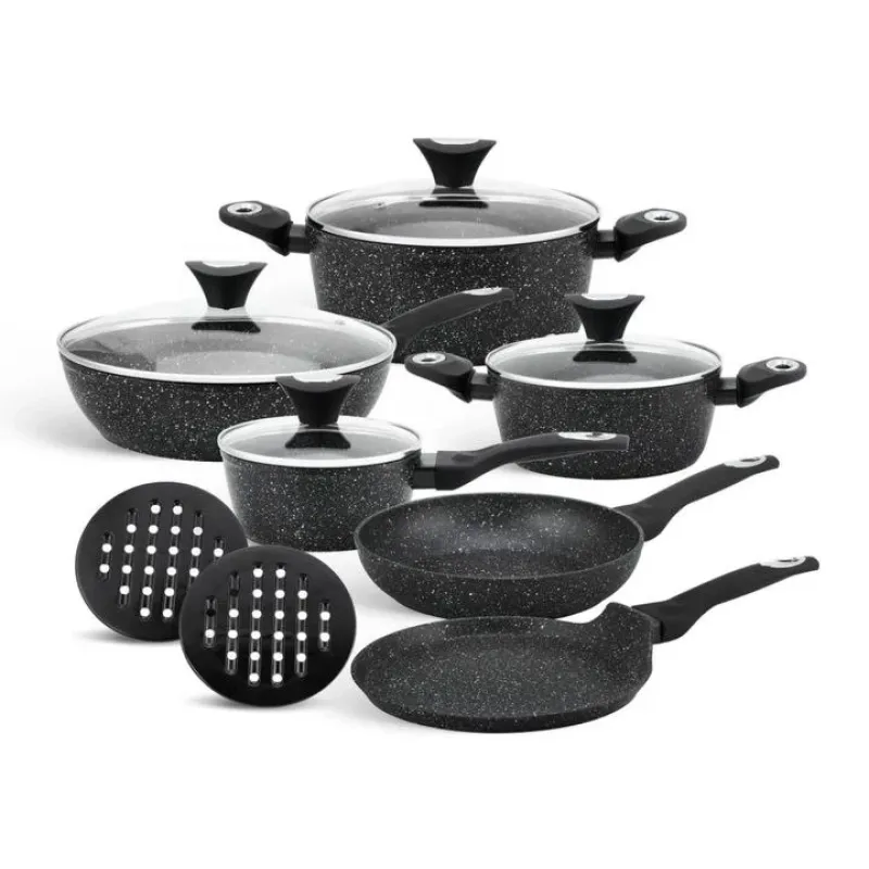 Набір казанів кастрюль EDENBERG EB-5615 з мармуровим покриттям 12 предметів — для приготування супів, каш, тушкованих страв та варіння на весь сімейний стіл. Якісна нержавіюча сталь або антипригарне покриття забезпечують гігієнічність та довговічність. Скляна кришка дозволяє стежити за процесом приготування без відкривання. Зручні ручки-прихватки не нагріваються. Підходить для всіх видів плит включно з індукційними.