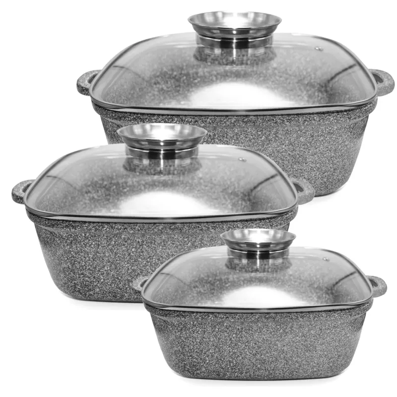 Набір казанів UNIQUE UN-5501 6пр (20см/24см/28см, квадратні)