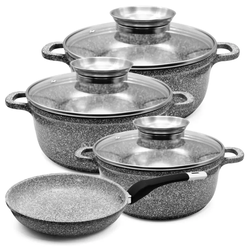 🛒 Шукаєте надійний товар? Ви можете купити Набір казанів UNIQUE UN-5521 4пр (16см/20см/24см, круглі, 24см сковорода) в нашому інтернет-магазині Shtyrman. Гарантія якості та швидка доставка по всій Україні!