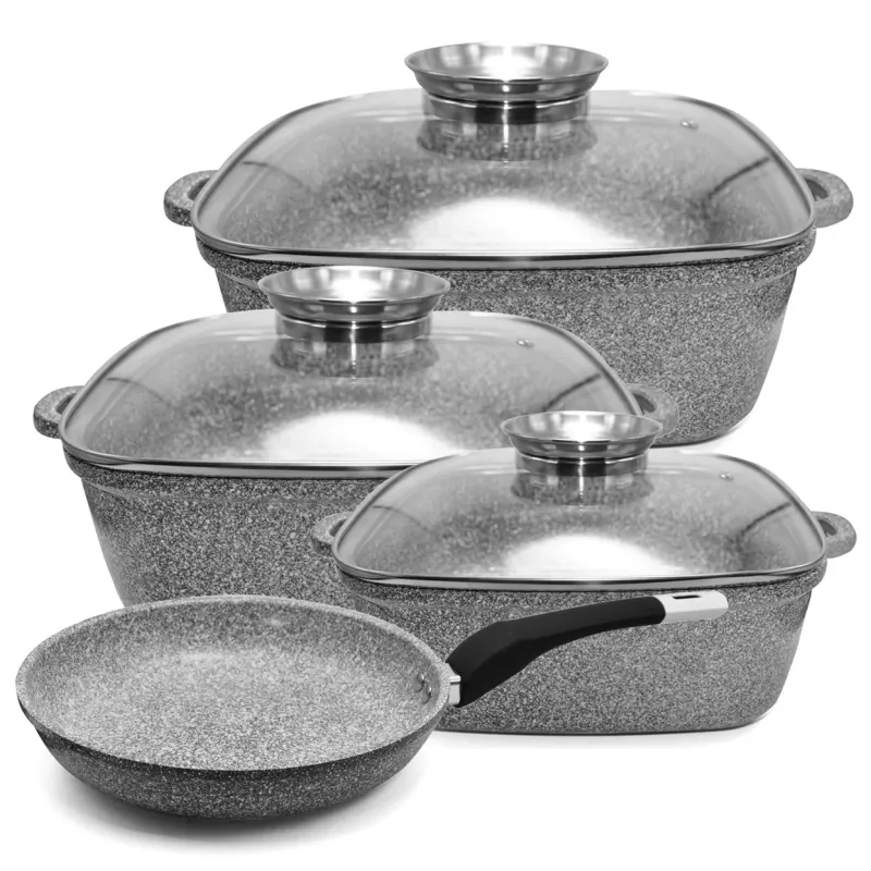 Набір казанів UNIQUE UN-5531 4пр (16см/20см/24см, квадратні, 24см сковорода)