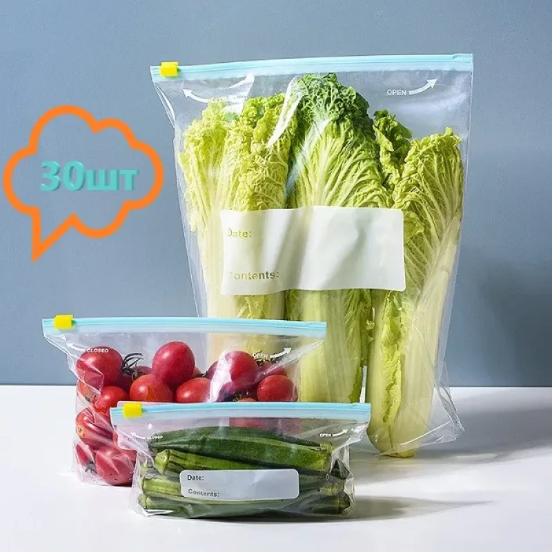 Набір пакетів для зберігання їжі із замком Zip-lock 3 розміру (30шт в упаковці)