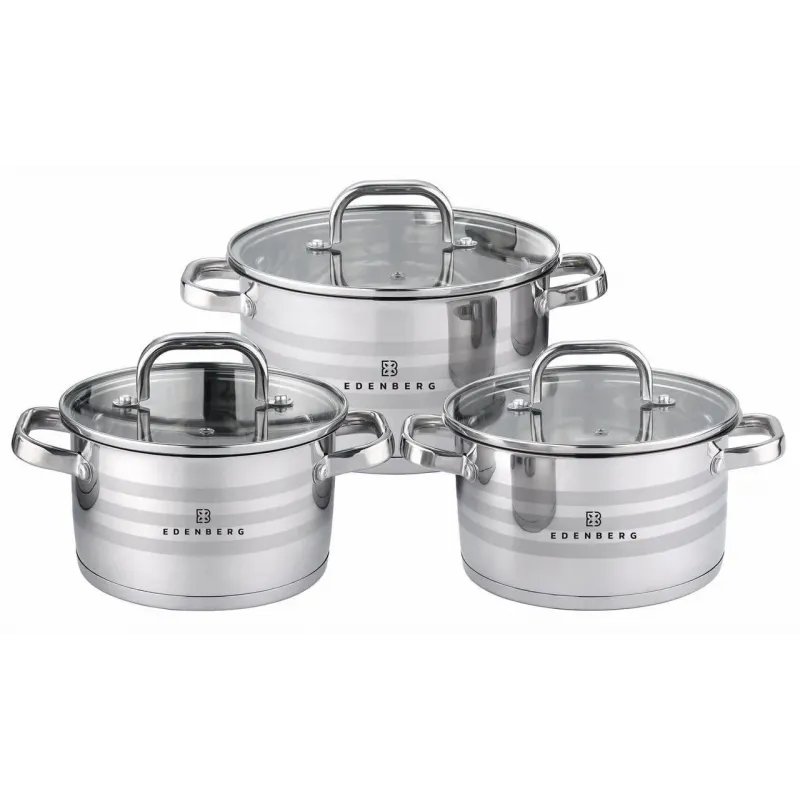 Теги: набір посуду Edenberg, каструлі Edenberg EB-3741, посуд з нержавіючої сталі, кухонний посуд 6 предметів, набір каструль з кришками, якісний посуд для кухні, Edenberg Україна, посуд для всіх типів плит, набір каструль недорого, професійний кухонний посуд, посуд з термостійкими ручками, каструлі для індукційних плит, набір посуду для сім'ї, Edenberg 6 предметів, купити набір каструль