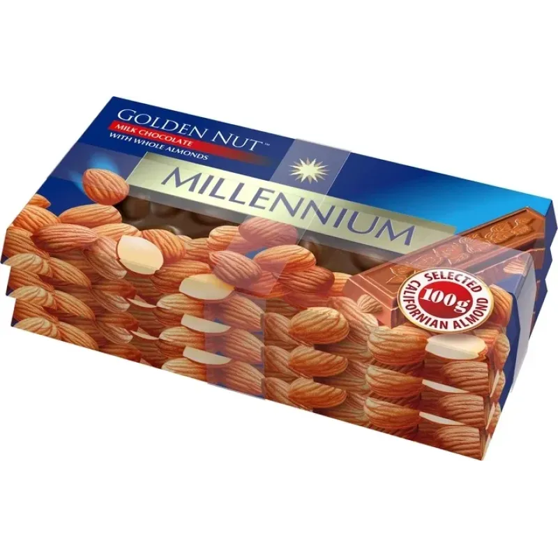 Теги: шоколад, молочний шоколад, мигдаль, шоколадні набори, шоколадні подарунки, шоколад з горіхами, Millennium Golden Nut