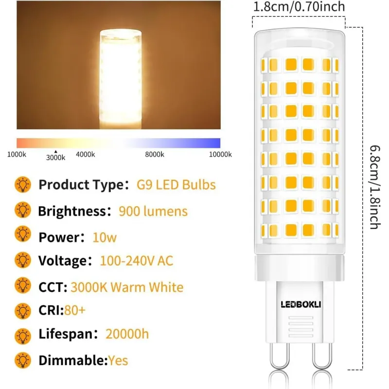 Теги: лампи G9, світлодіодні лампи з диммером, LED лампи 10W, лампи теплий білий 3000K, енергозберігаючі лампи, лампи для люстри, набір ламп G9