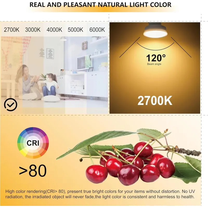 Просто вкрутіть лампи у стандартні патрони GU10 ваших точкових світильників, спотів або трекових систем. Підходять для натяжних стель, гіпсокартонних конструкцій, меблевого освітлення. Не потребують додаткових драйверів чи трансформаторів — працюють від мережі 220V.