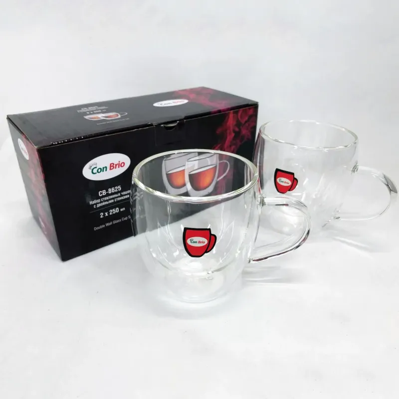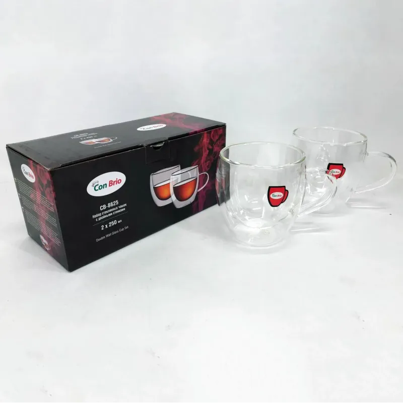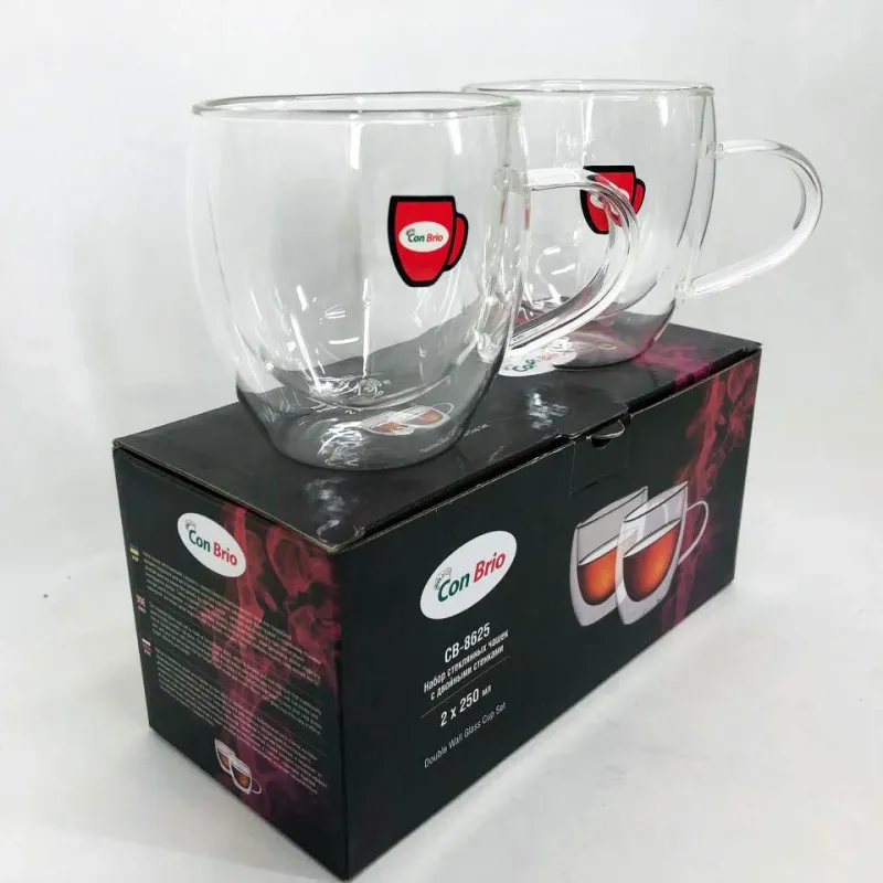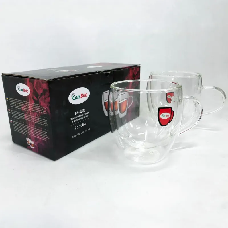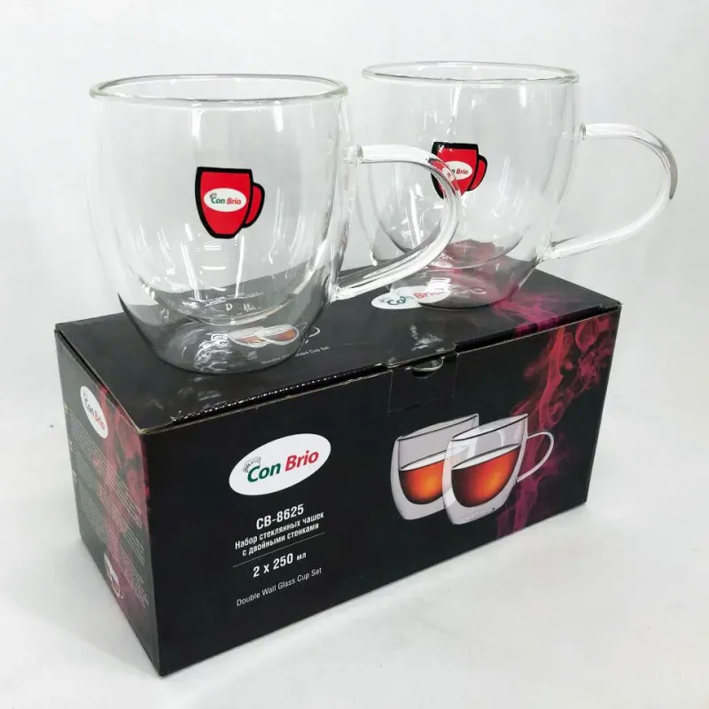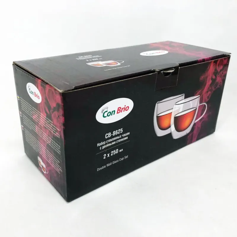Набор чашек с двойным дном Con Brio изготовлен из стекла. Удобные, вместительные чашки незаменимые дома и на рабочем столе в офисе. Можно мыть в посудомоечной машине. Также идеально подойдут для домашнего использования.