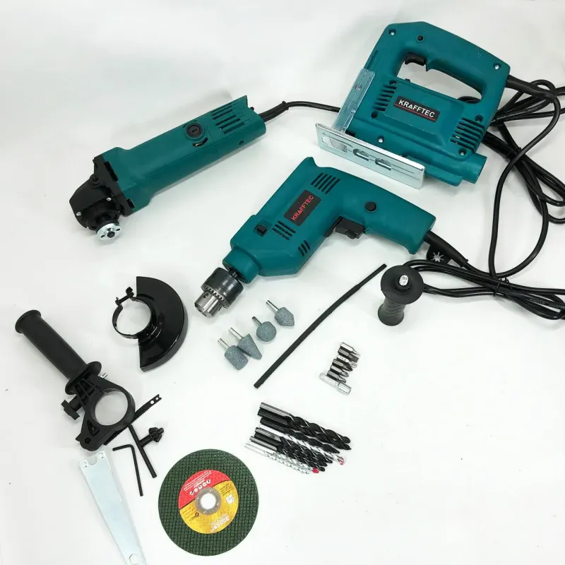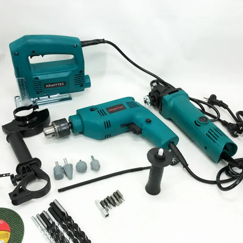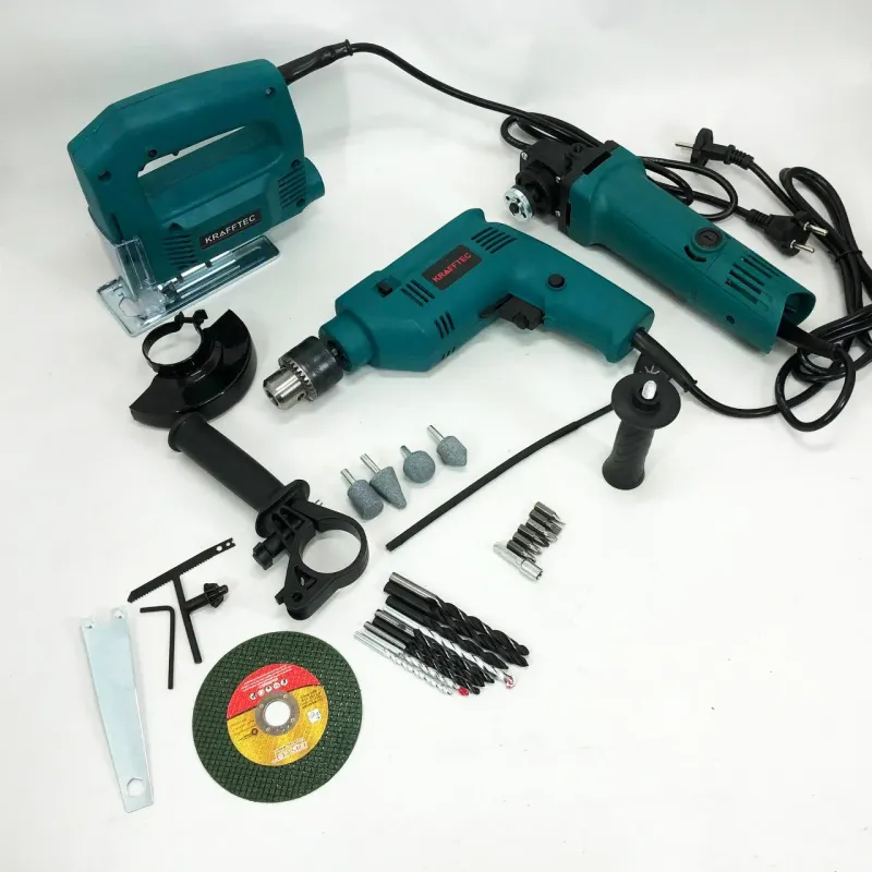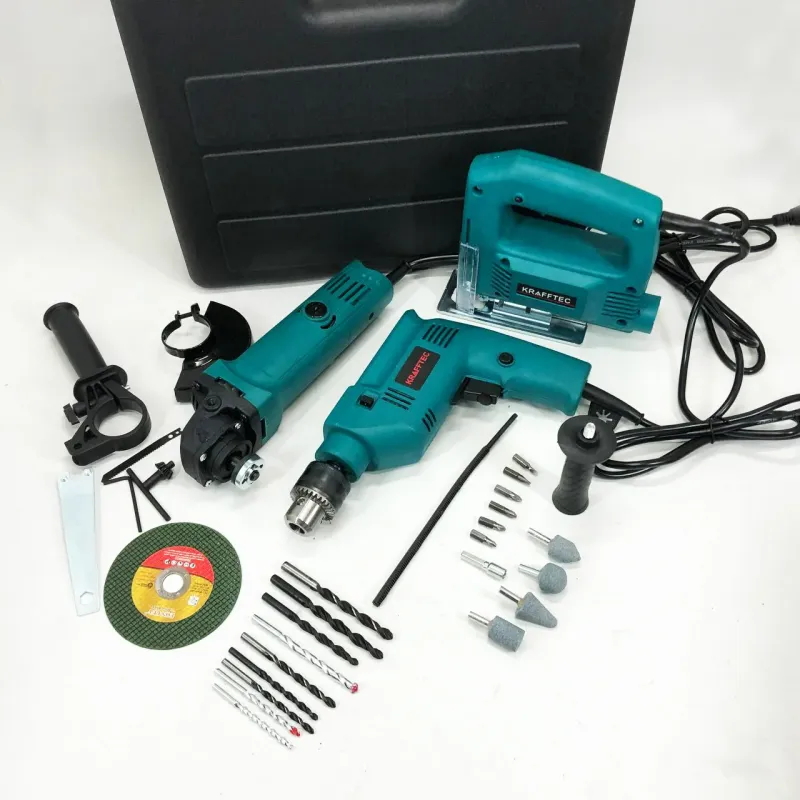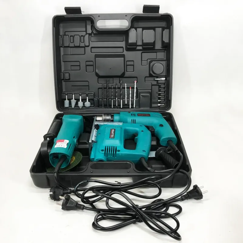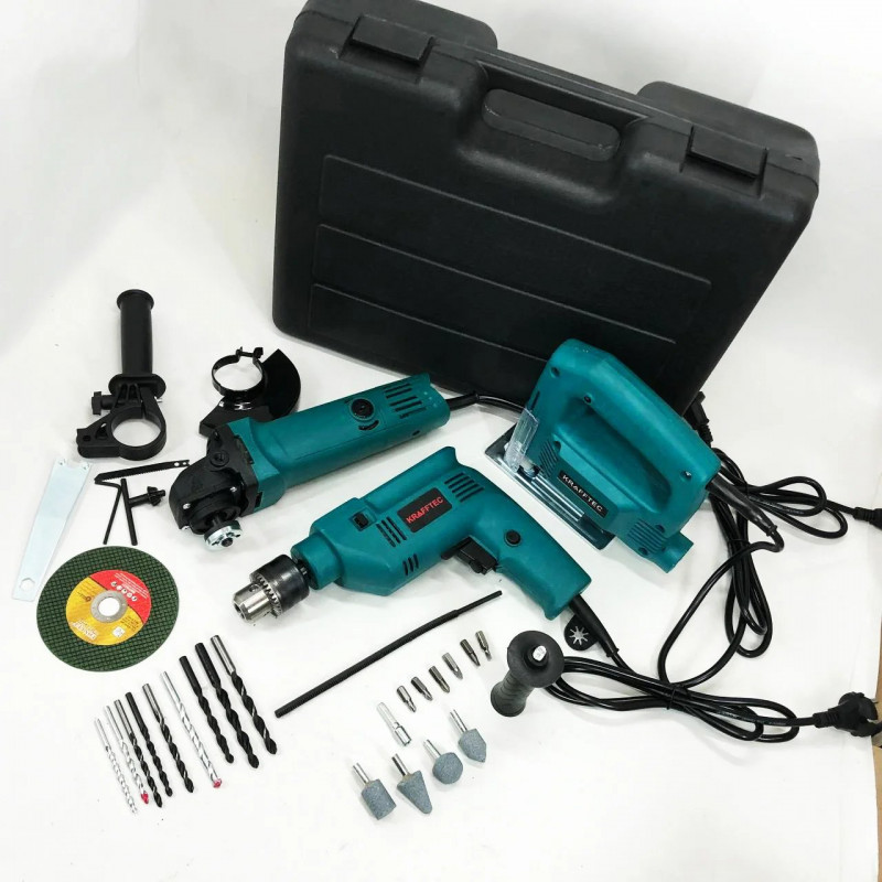 Набор электроинструментов 3в1: сетевая ударная дрель, болгарка сетевая, лобзик электрический мощный