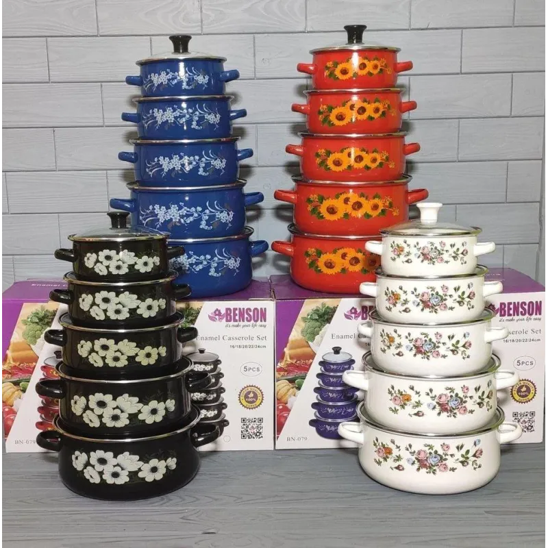 Набор Эмалированные Кастрюли 10 предметов BN-079 — для приготування супів, каш, тушкованих страв та варіння на весь сімейний стіл. Якісна нержавіюча сталь або антипригарне покриття забезпечують гігієнічність та довговічність. Скляна кришка дозволяє стежити за процесом приготування без відкривання. Зручні ручки-прихватки не нагріваються. Підходить для всіх видів плит включно з індукційними.