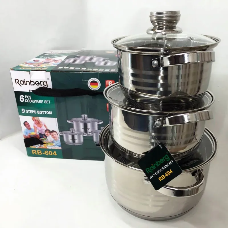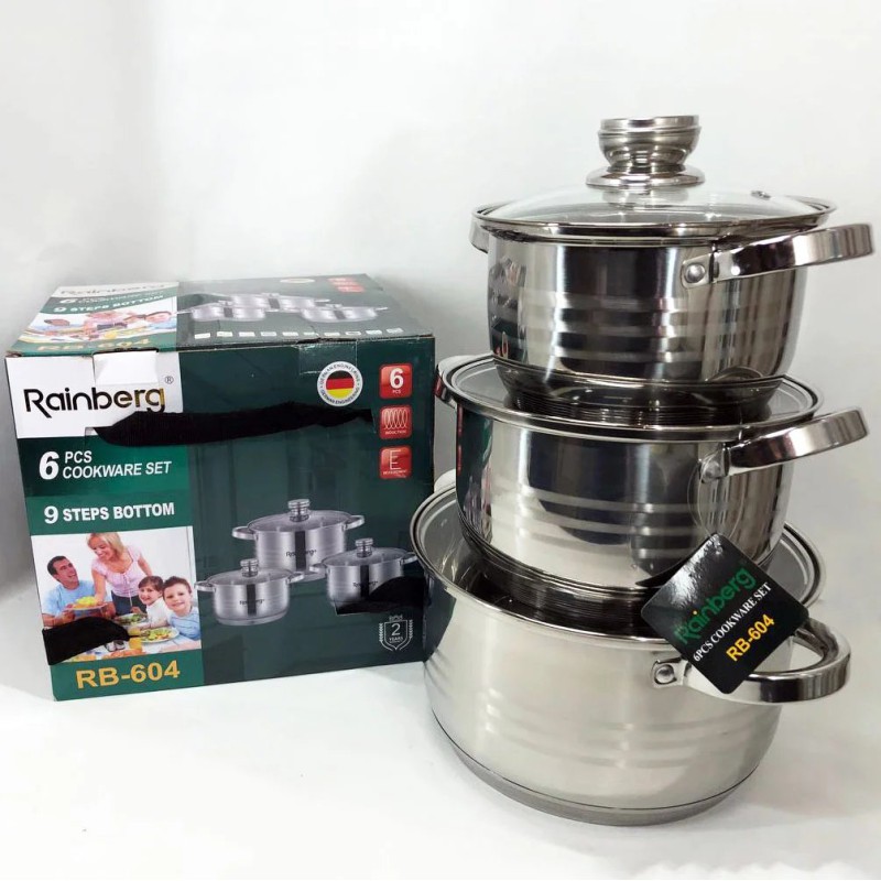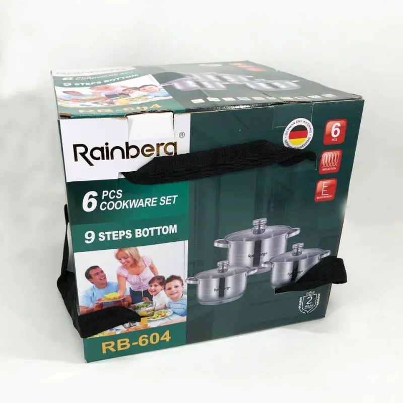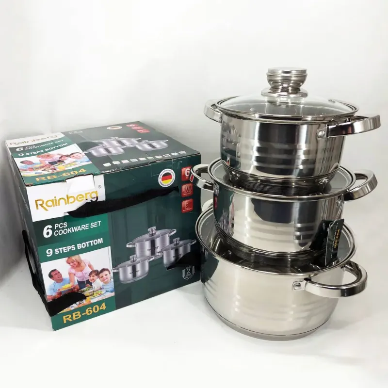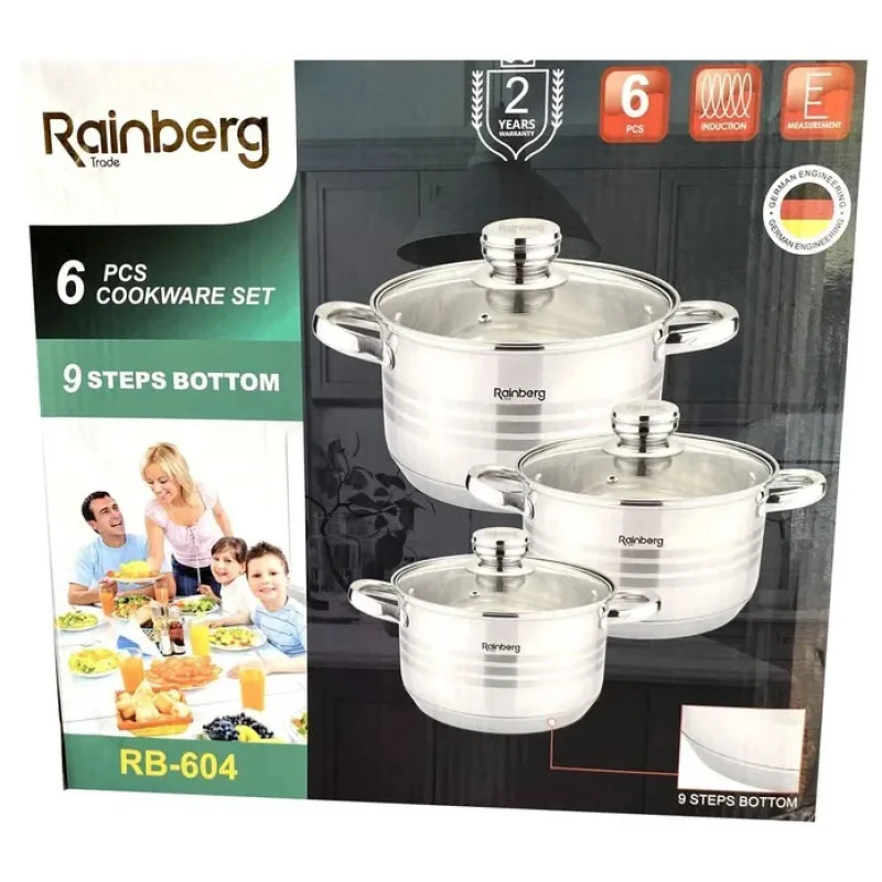 Набор кастрюль Rainberg RB-604 нержавеющая сталь, капсульное 9-ти слойное дно (3 кастрюли 3 крышки)