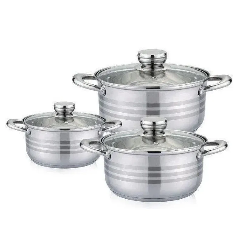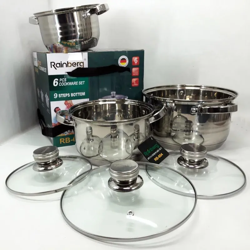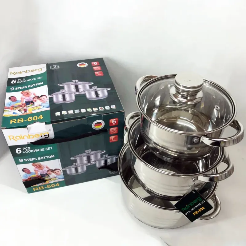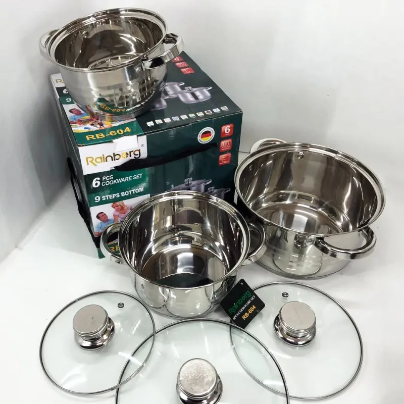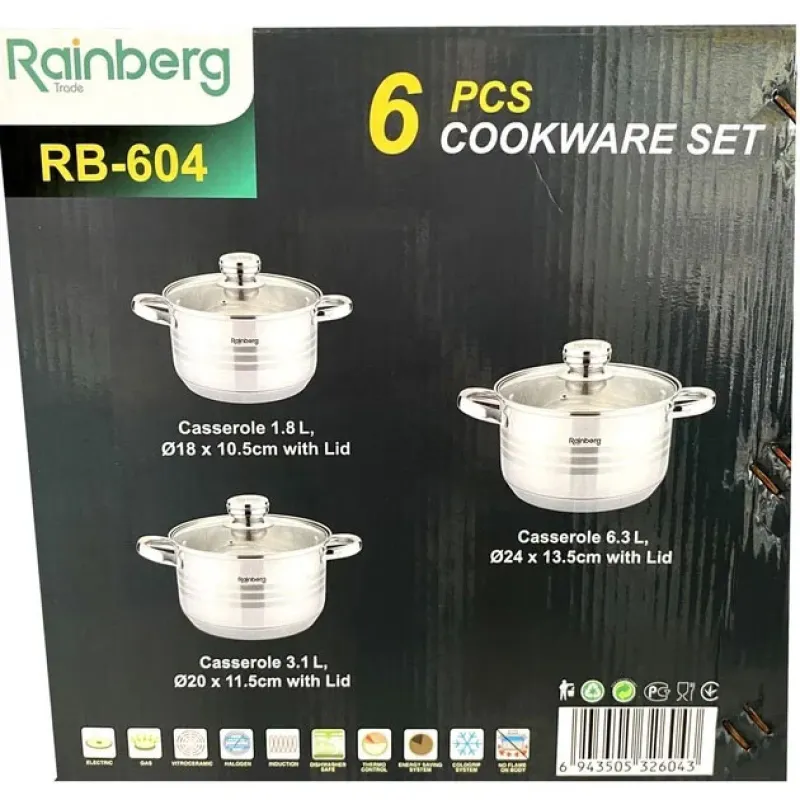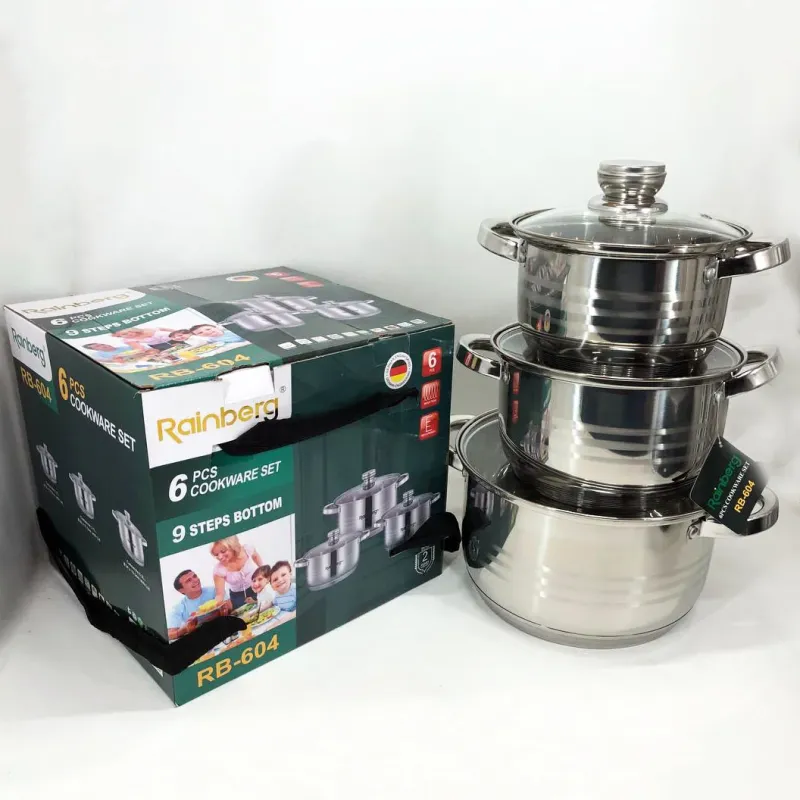 Набор кастрюль Rainberg RB-604 нержавеющая сталь, капсульное 9-ти слойное дно (3 кастрюли 3 крышки)