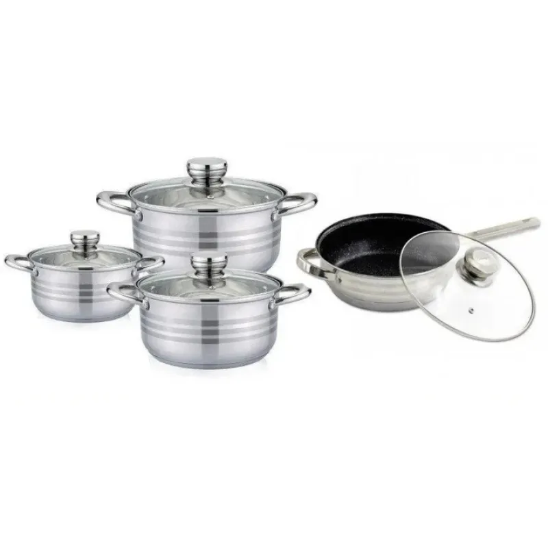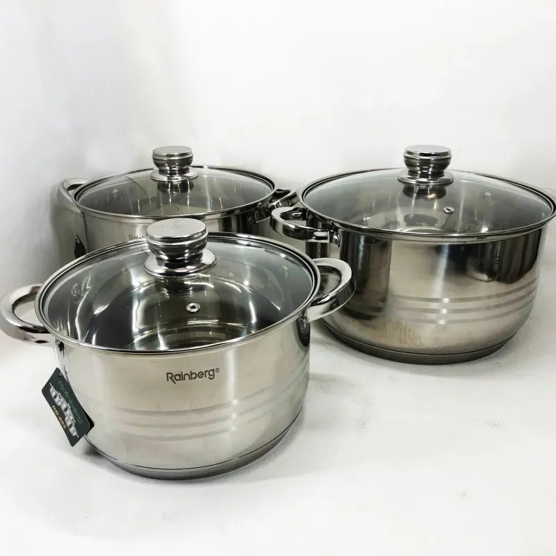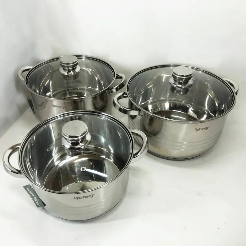 Данный набор порадует любого повара или домохозяйку своей практичностью и удобным использованием. В нём Вы найдете: три кастрюли большие и крышки к ним . Это большой и качественный набор, изготовленный из экологически чистой нержавеющей стали. Посуда оснащена крышками стеклянными . Капсульное, индукционное дно быстро прогревается и равномерно распределяет тепло. После использования Вы сможете помыть кастрюли и другие изделия из набора самостоятельно или отправить в посудомоечную машину.
