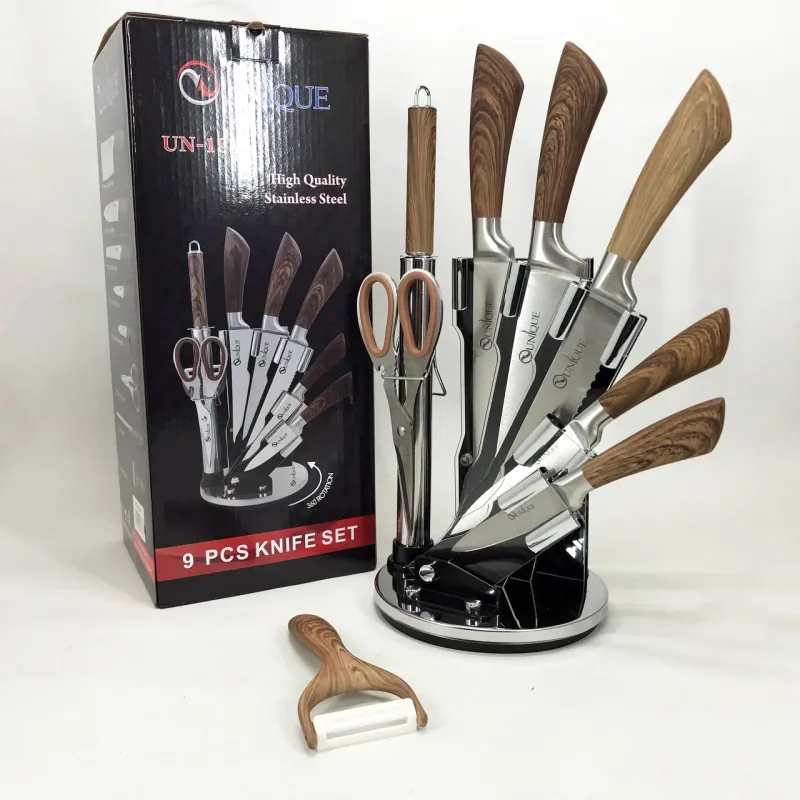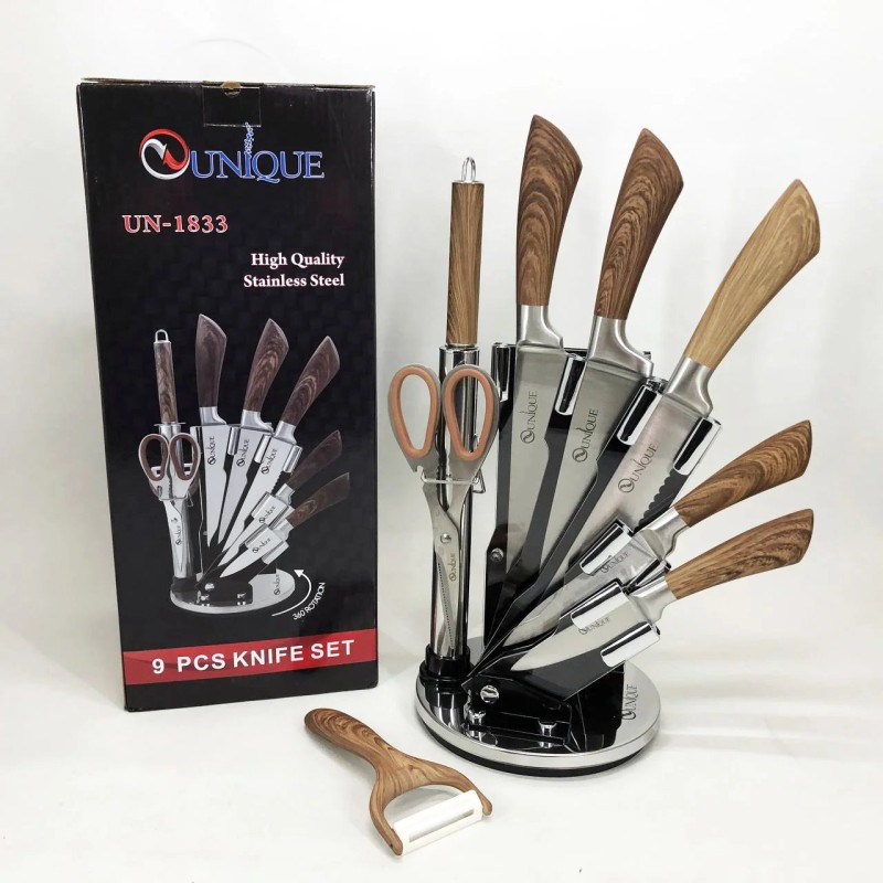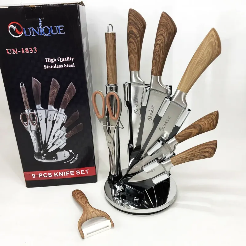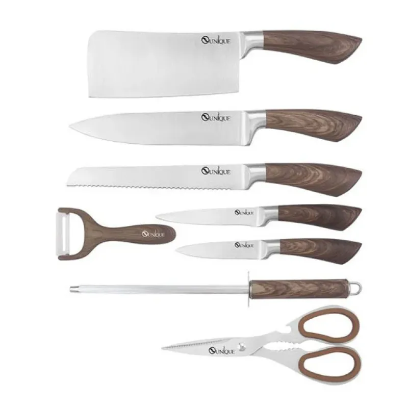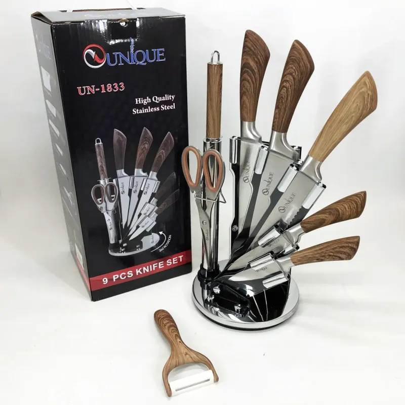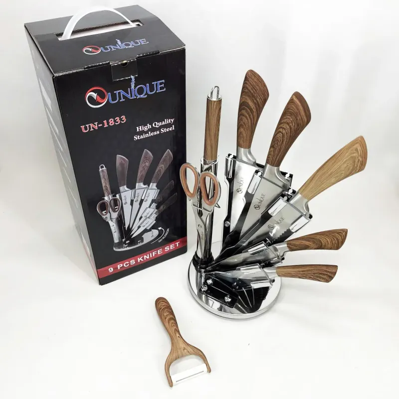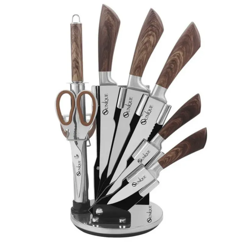 Набор кухонных ножей UNIQUE UN-1833 с деревянными ручками и подставкой