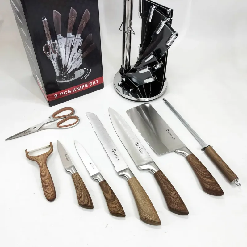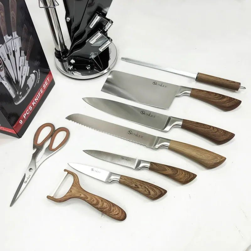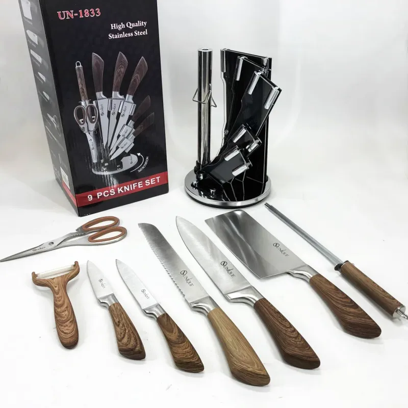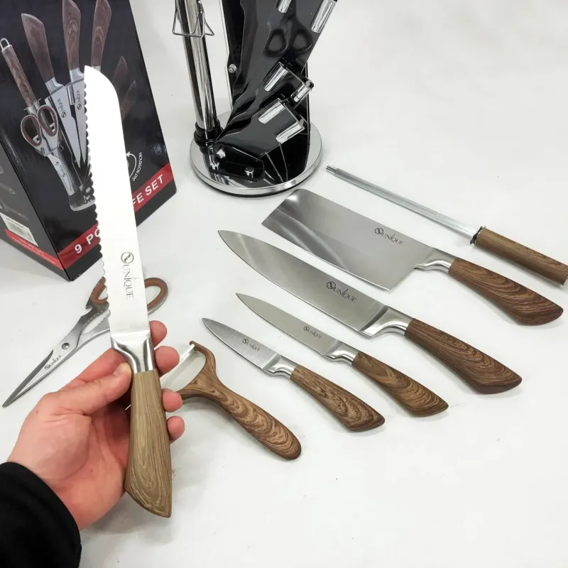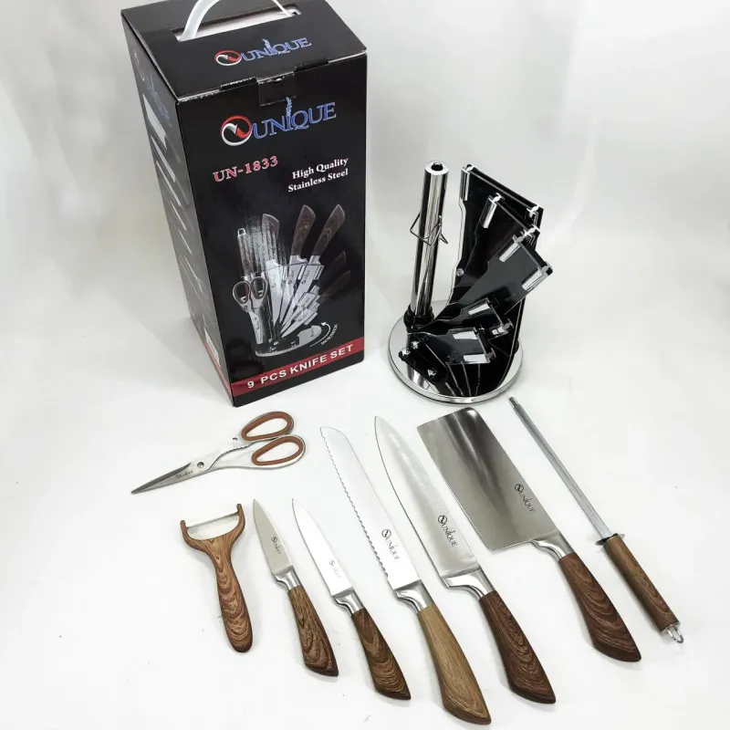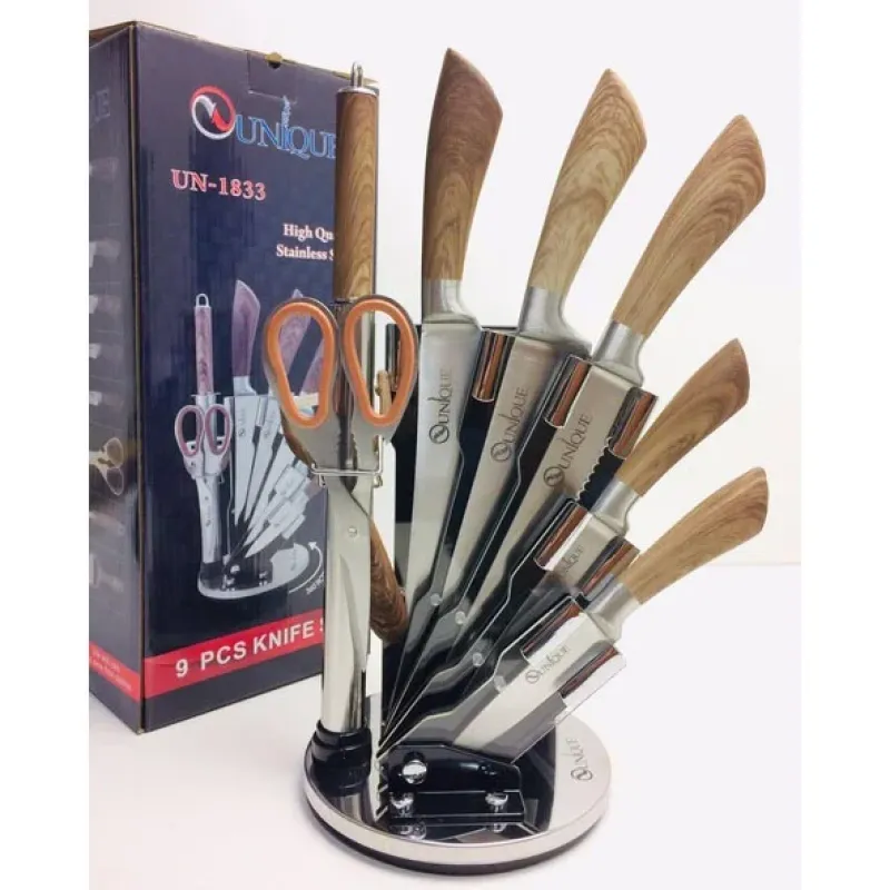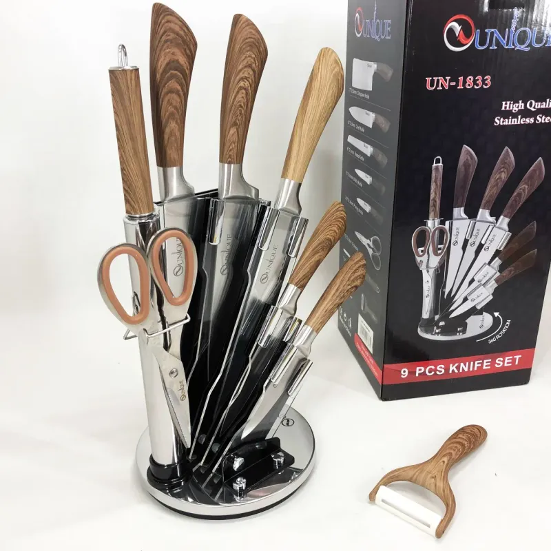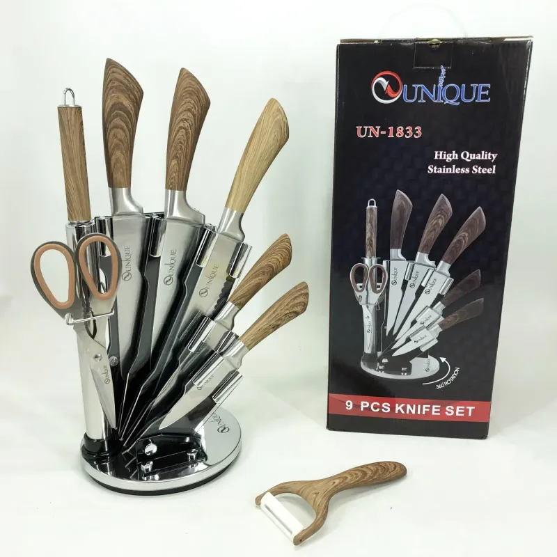 Набор кухонных ножей UNIQUE UN-1833 с деревянными ручками и подставкой