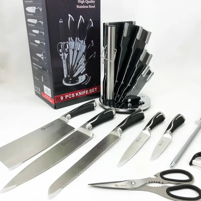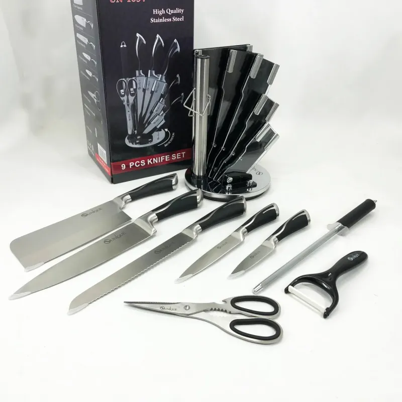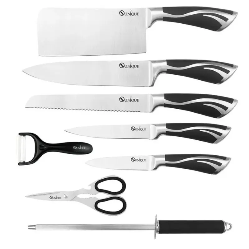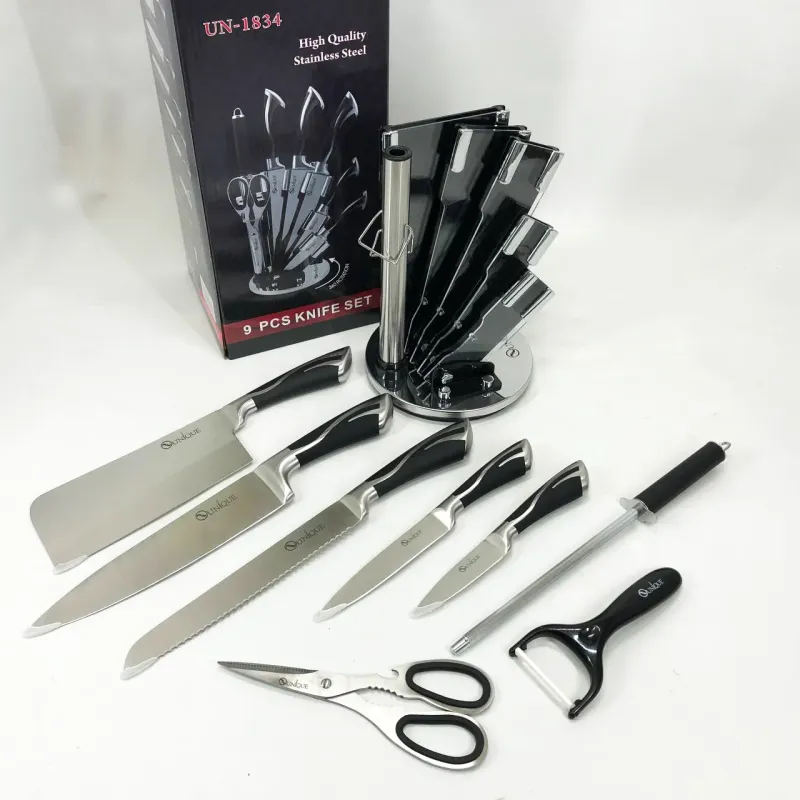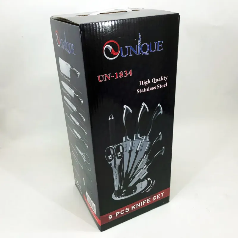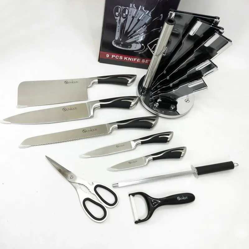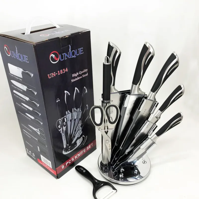 Набор ножей UNIQUE UN-1834 с вращающейся подставкой 9 предметов, Ножи кухонные из нержавеющей стали