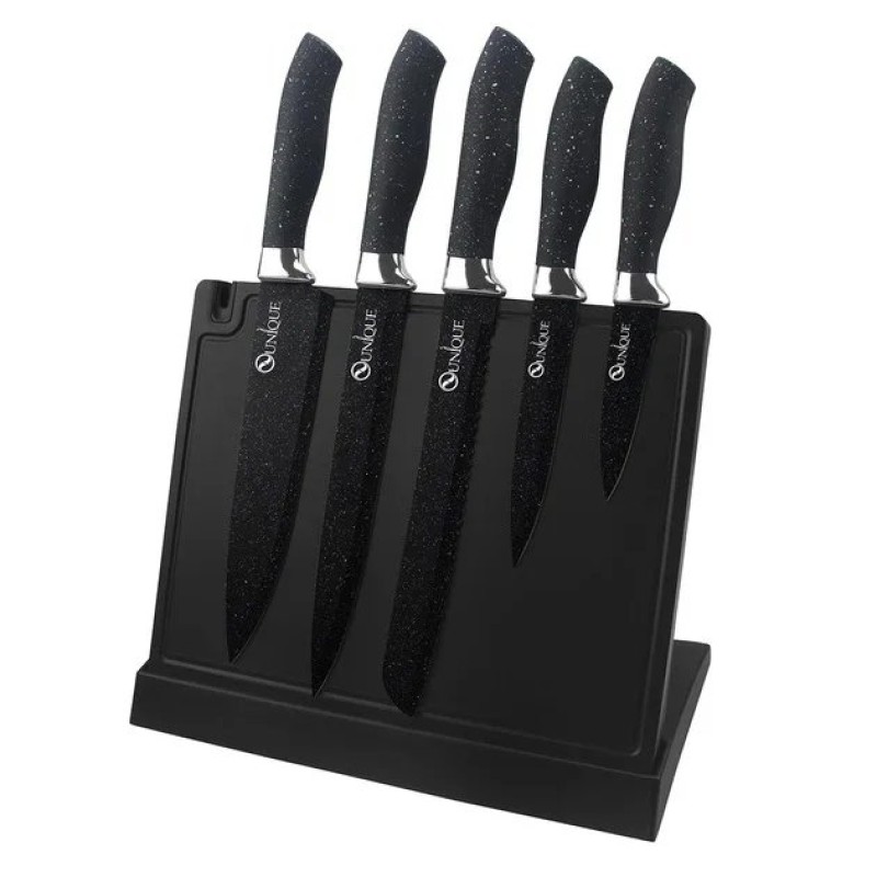 Набор ножей UNIQUE UN-1841 из нержавеющей стали с подставкой + точилка 6 предметов